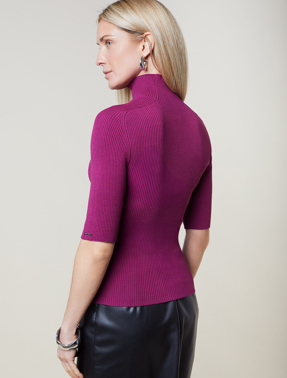 Водолазка тонкой вязки в рубчик выполнена из хлопка. Лаконичная модель с коротким рукавом дополнена металлическим логотипом бренда. Изделие идеально сидит по фигуре и не сковывает движений. Мягкая пряжа очень приятная к телу не колется и сохраняет тепло при этом не перегревая.
