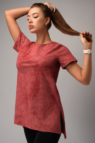 Свободный крой с круглым вырезом, удлиненной спинкой и разрезами по бокам делает домашнюю футболку-тунику удобной и привлекательной. Трикотажная футболка варенка отлично подойдет для тех моментов, когда хочется чувствовать себя женственной и свободной.
