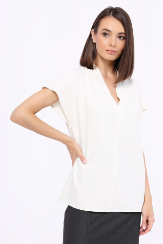 Блузка с коротким рукавом станет универсальным элементом Вашего гардероба. Блузка прямого кроя с коротким рукавом позволит Вам чувствовать себя свободно, комфортно и женственно. Утончённый V-образный вырез выгодно подчёркивает линию шеи. Блузка прямого кроя гармонично впишется как в офисный, так и в повседневный стиль.