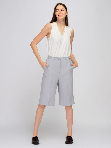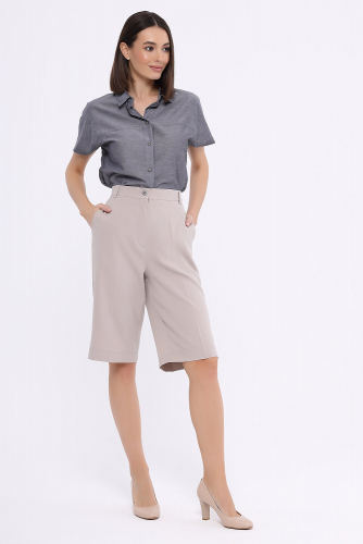 Идеальным комплектом для прямых шорт до колена является укороченный жакет на двух пуговицах из нашей коллекции, который выполнен из идентичного шортам материала. В зависимости от Вашего желания и настроения, шорты гармонично сочетаются и с классическими туфлями, и лоферами, и даже кроссовками. Для завершения образа рекомендуем дополнить шорты подходящим ремнём.