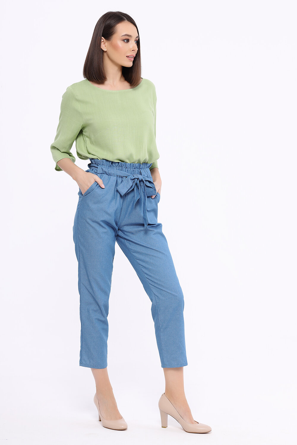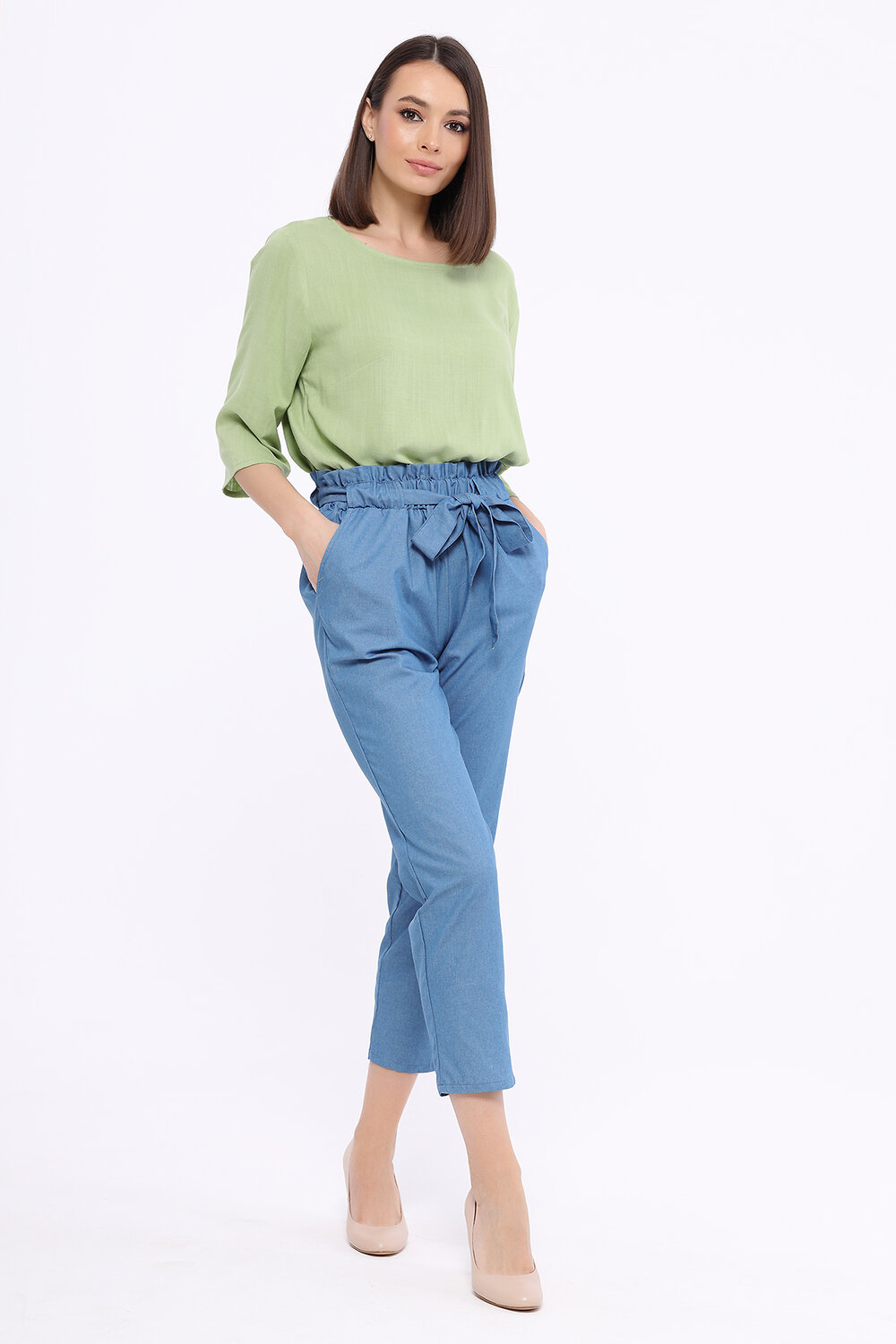 Зауженные брюки с поясом - стильное и комфортное решение для весенне-летнего гардероба. Брюки дополнены поясом, выполненным из того же материала, который завязывается на талии и позволяет регулировать плотность посадки. Укороченная длина брюк приоткрывает голень и смотрится очень женственно. Для удобства на брюках предусмотрены карманы в шве.