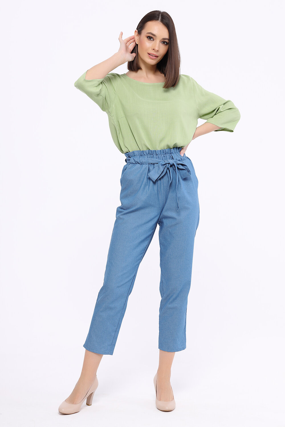 Укороченные брюки с резинкой на талии универсальны в своём применении. Вы можете надеть строгую свободную блузку и туфли на высоком ходу и получить современный офисный образ на тёплую погоду. А если дополните их футболкой и обувью на низком ходу, сможете создать стильный образ в стиле кэжуал.