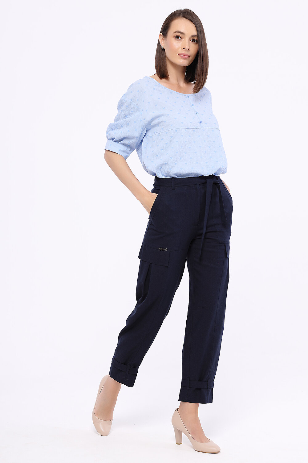 Лаконичный крой блузки позволяет дополнять её подходящими Вашему вкусу и настроению аксессуарами. Для завершений офисного образа сочетайте блузку с классическими брюками или юбкой. Для образа в стиле кэжуал наденьте джинсы и обувь на низком ходу.