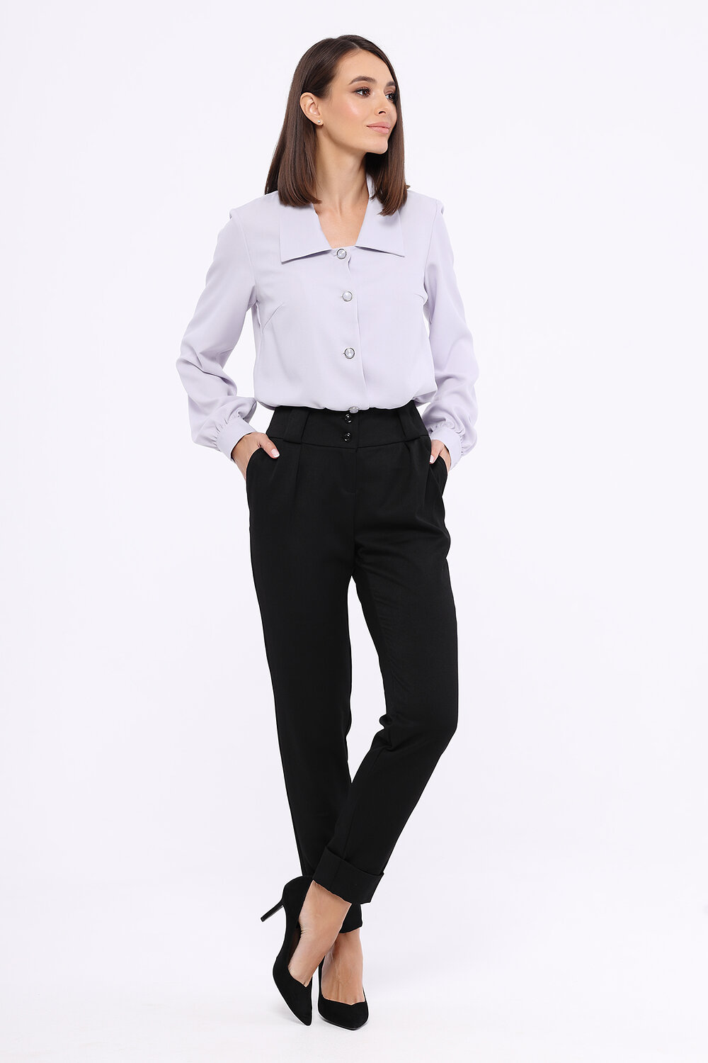 Прямая блузка с фигурным вырезом.Прямая блузка с фигурным вырезом - беспроигрышный вариант для современного офисного стиля. Аккуратный отложной воротник и длинные рукава составляют строгий деликатный образ. Ткань блузки лёгкая и воздушная, что придаёт образу утончённости и элегантности. Классическая блузка на пуговицах стильно будет смотреться при любых обстоятельствах.Вырез - фигурный. Отделка горловины - воротник. Воротник отложной. Рукав длинный. Рукава втачные. Вид застёжки - пуговицы. Декоративный элемент - пуговицы. Крой прямой. Рекомендована стирка при температуре не более 30С.Дополнив блузку жакетом, юбкой карандаш или классическими брюками, Вы создадите строгий деловой образ. С помощью прямой блузки с фигурным вырезом также можно создать стильный городской образ. Заправьте её в джинсы на высокой талии, наденьте туфли с острым носом на высоком или на низком ходу.