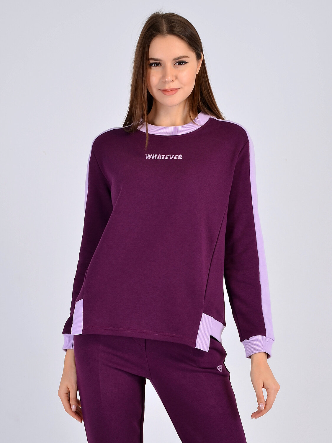 Свитшот с фигурным низом. Спортивный свитшот линейки Актив прямого кроя необходимая вещь в гардеробе современной девушки. В свитшоте с длинным рукавом и округлой горловиной Вы будете чувствовать себя уютно и комфортно. Фигурный низ и контрастные элементы делают его фасон лаконичным и гармоничным. Повседневный свитшот выполнен из плотного трикотажа и подходит любому типу фигуры.Вырез горловины круглый. Рукава длинные. Рукава втачные. Без застежки. Декоративный элемент вышивка. Фигурный низ. Крой прямой. Рекомендована стирка при температуре не более 30С.Классический свитшот подходит всем, кто ценит удобство и ведет активный образ жизни. Вы можете надеть его на прогулку, на занятия спортом или носить дома. Свитшот с фигурным низом идеально дополнит Ваш повседневный стиль. Сочетайте его с комплектными спортивными брюками в тон или джинсами.