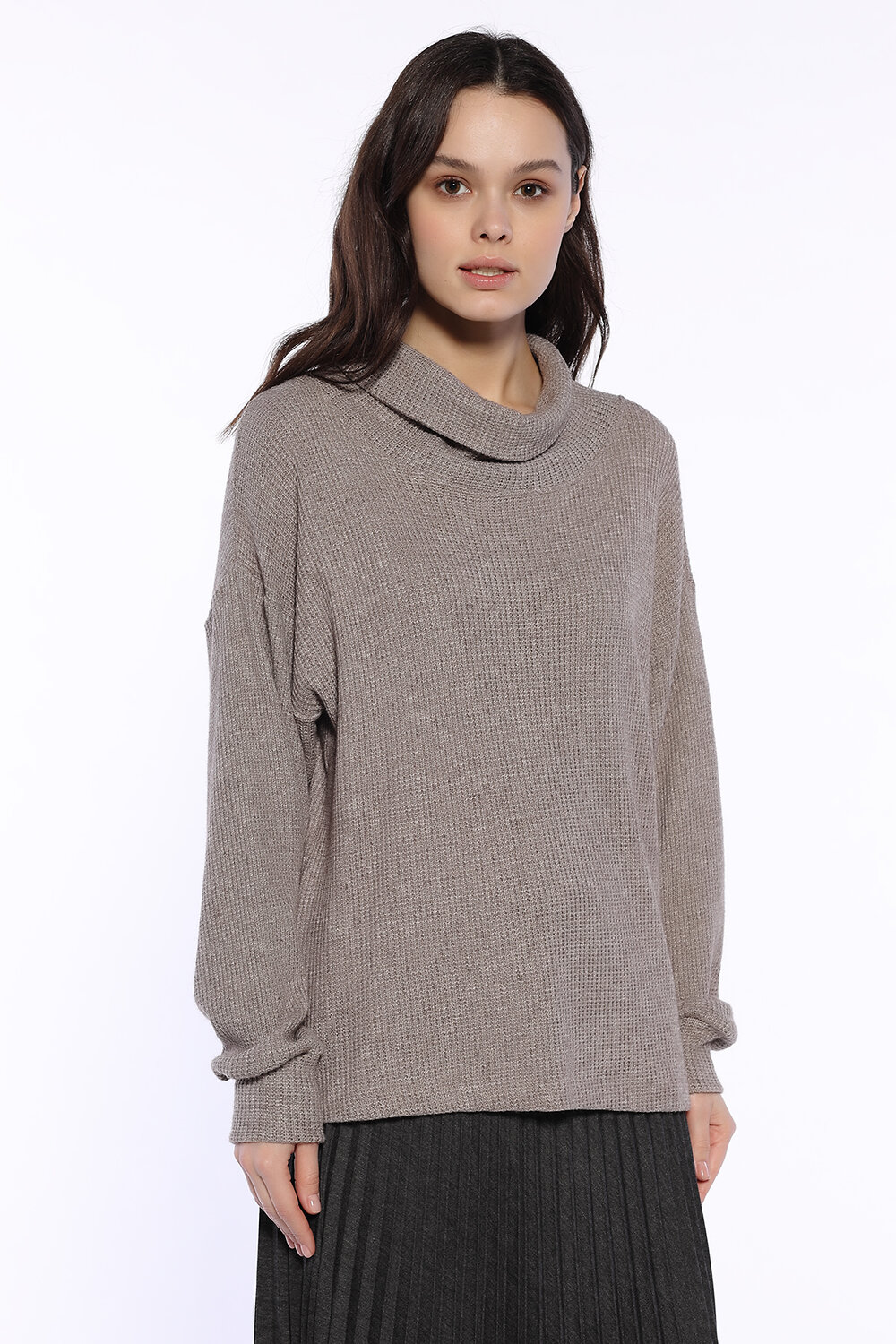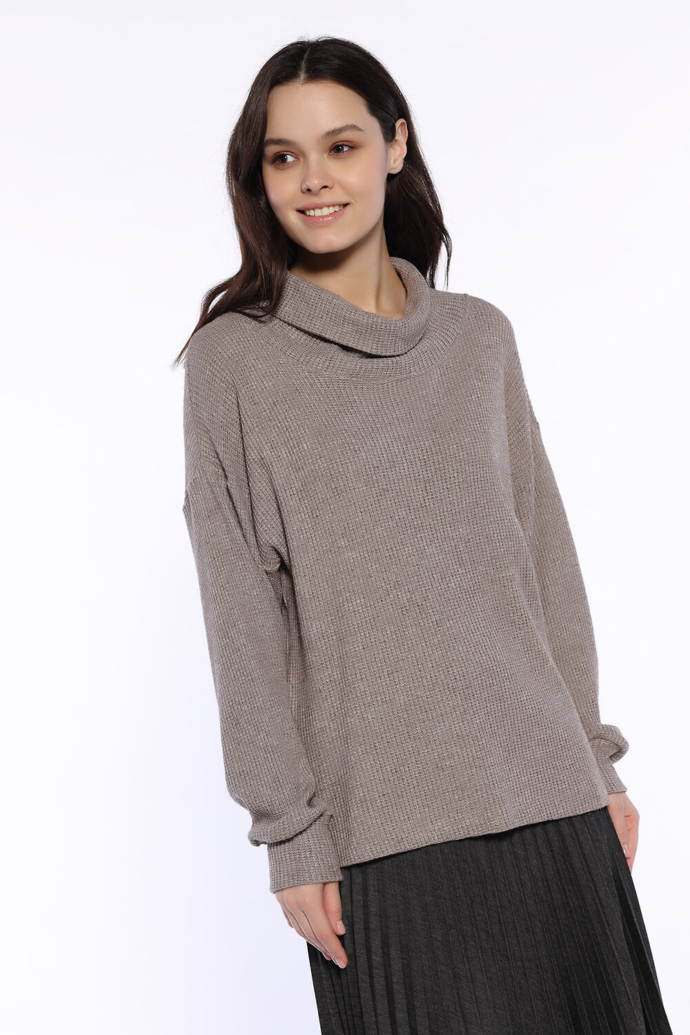 Джемпер с воротником хомутом. Невозможно представить осеннюю и зимнюю пору без уютного и комфортного свитера силуэта оверсайз с крупным воротником. Идеальный силуэт джемпера гармонично дополнит и офисный, и городской образы. Вам не захочется снимать эту вещь, поскольку она выполнена из приятного к телу материала и выглядит идеально. Вырез горловины круглый. Воротник хомут. Рукава длинные. Рукава втачные. Без застежки. Крой прямой. Рекомендована стирка при температуре не более 30С. Свободный джемпер с длинными рукавами носите навыпуск или заправляйте за пояс. Универсальный фасон одинаково удачно сочетается как с классическими вещами, так и с повседневными. Для придания образу торжественности наденьте на шею крупное украшение. Обувь выбирайте исходя из собственных предпочтений и мероприятия.