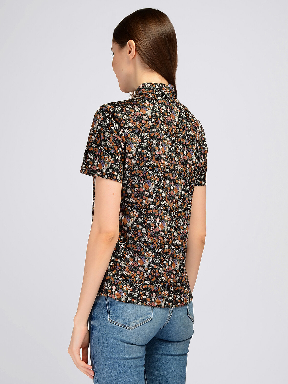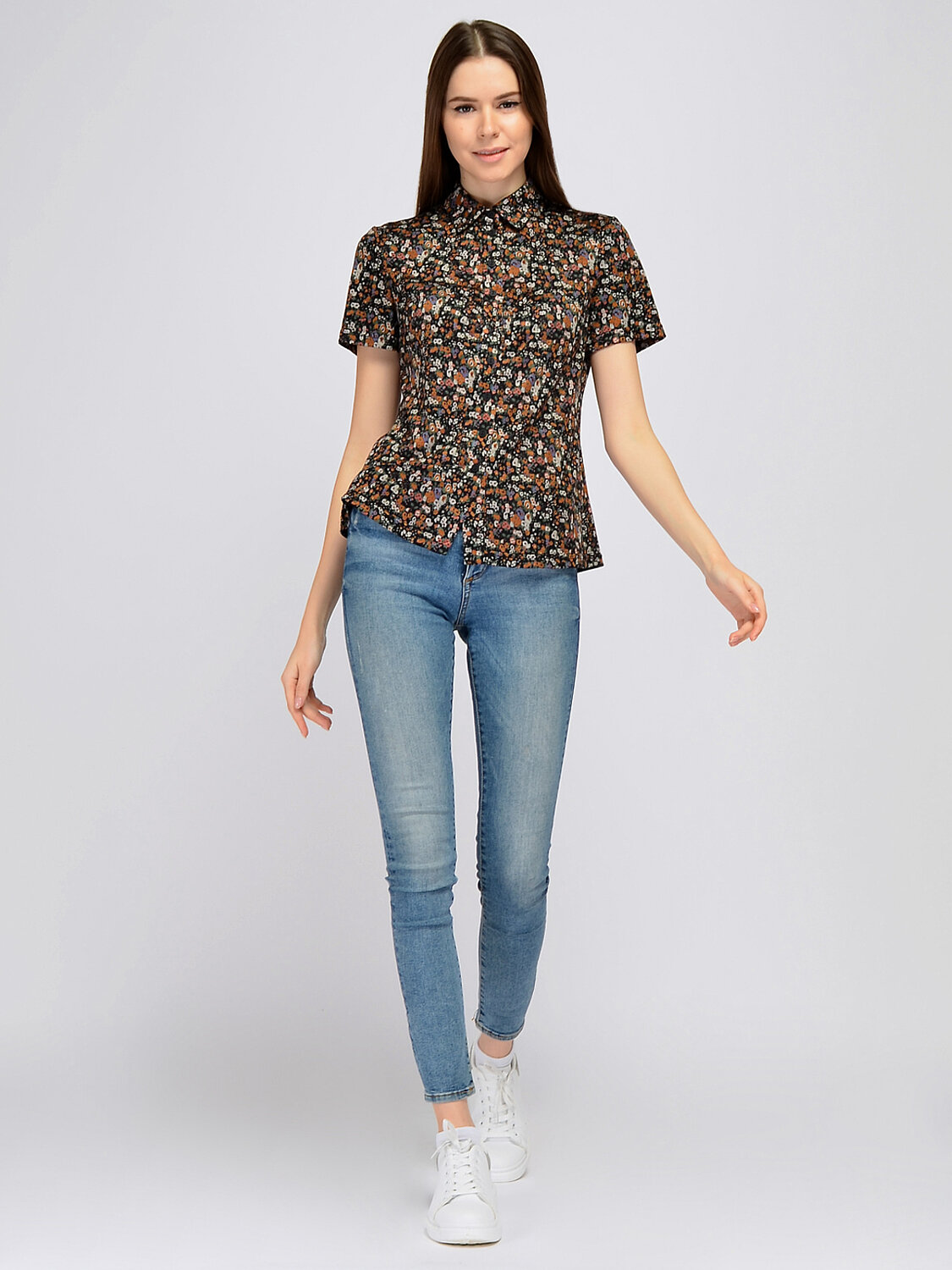 Блузка с отложным воротником.Приталенная блузка с коротким рукавом дополнит офисный или повседневный стиль. Отложной воротник придает образу строгости, а контрастные расцветки добавляют притягательных акцентов. Блузка дополнена декоративными защипами на планке с пуговицами для удобной посадки в груди.Вырез горловины округлый. Отделка горловины воротник. Воротник отложной. Рукава короткие. Рукава втачные. Вид застежки пуговицы. Крой приталенный. Декоративные защипы от планки. Рекомендована стирка при температуре 30С. Создайте свой весенний образ, дополнив блузку с отложным воротником однотонными брюками, юбкой или удобными джинсами. Носите блузку на выпуск или заправленной за пояс. Для делового образа выберите обувь на высоком ходу и жакет. А если собираете городской образ в стиле кэжуал, наденьте удобную обувь на низком ходу и свободный кардиган.