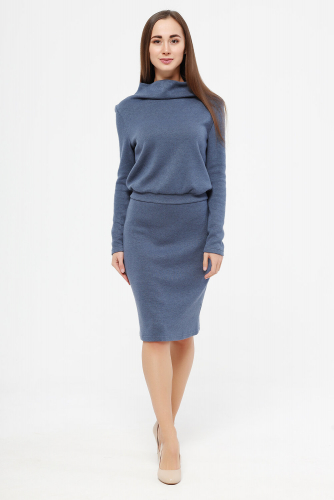 Платье женское из трикотажного полотна. Рукав длинный. Воротник- цельнокроеная стойка. Пояс втачной.