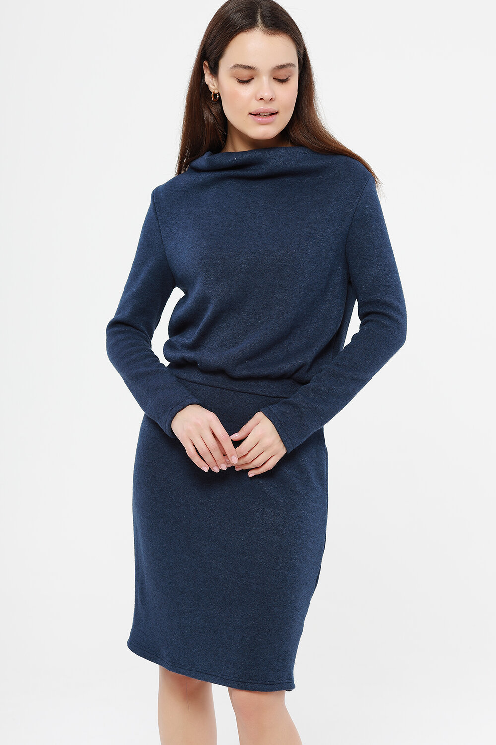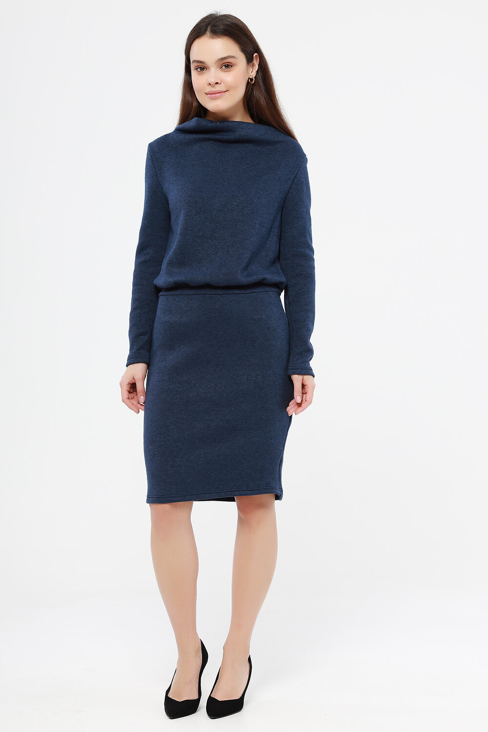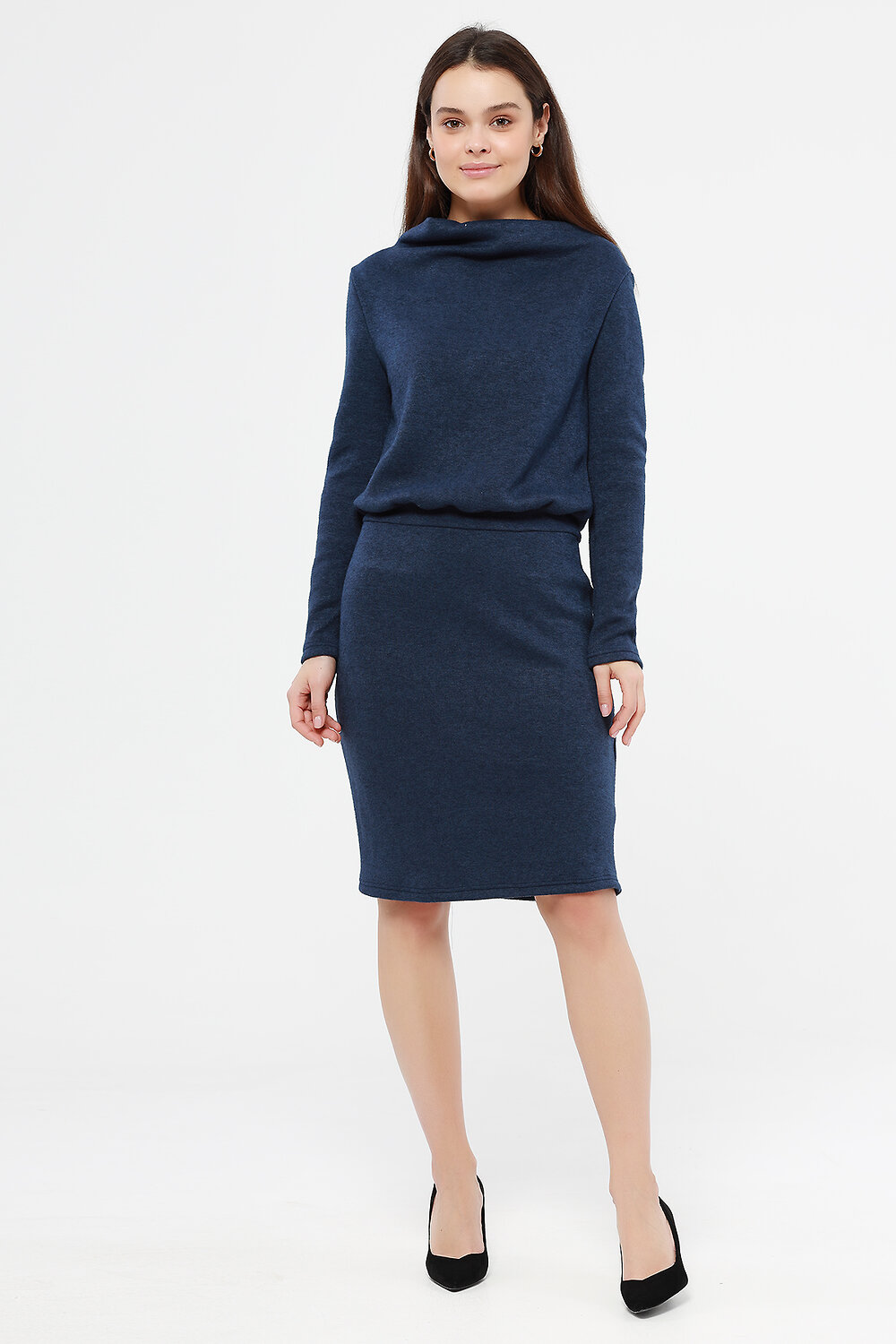 Платье женское из трикотажного полотна. Рукав длинный. Воротник- цельнокроеная стойка. Пояс втачной.