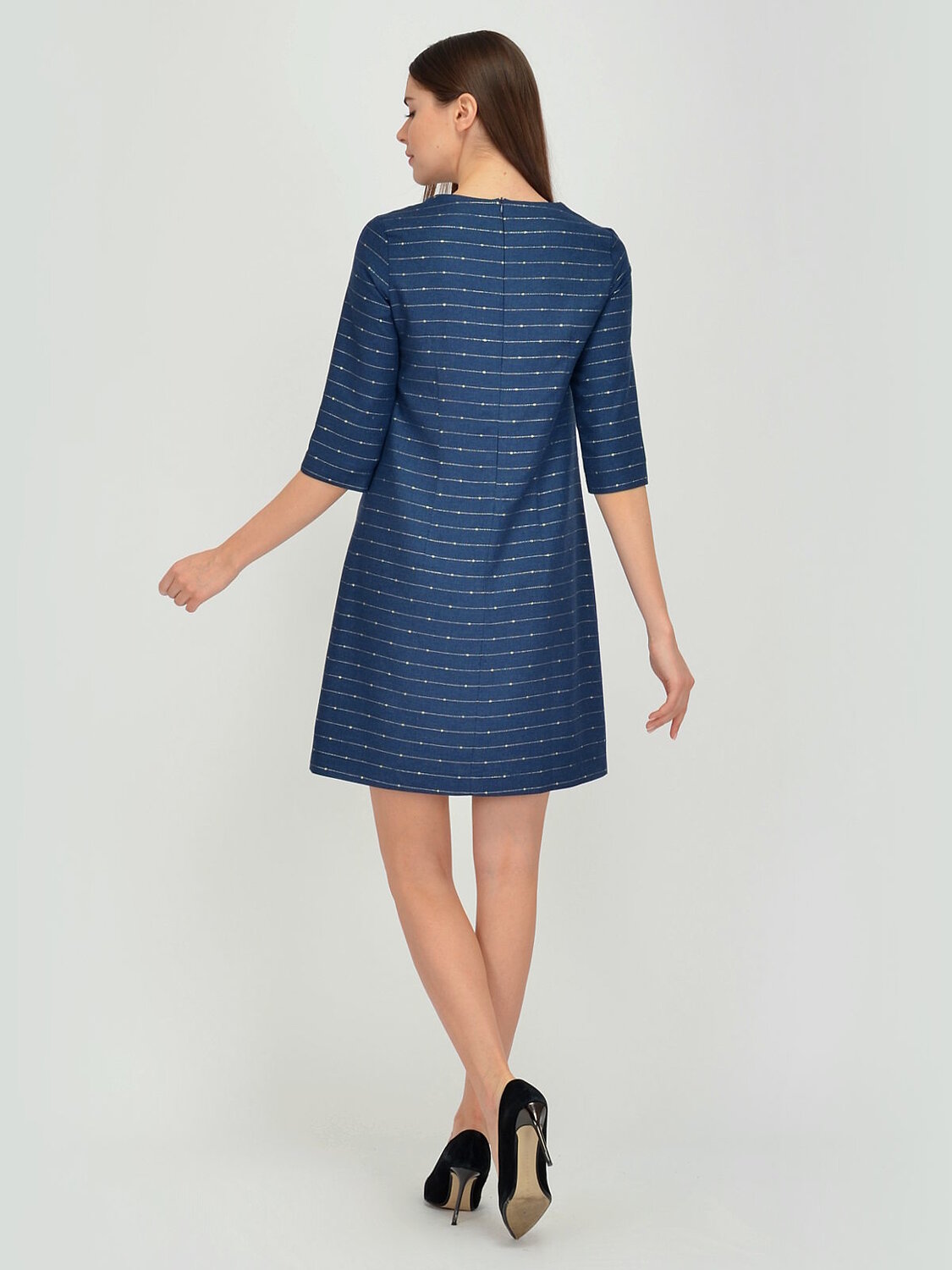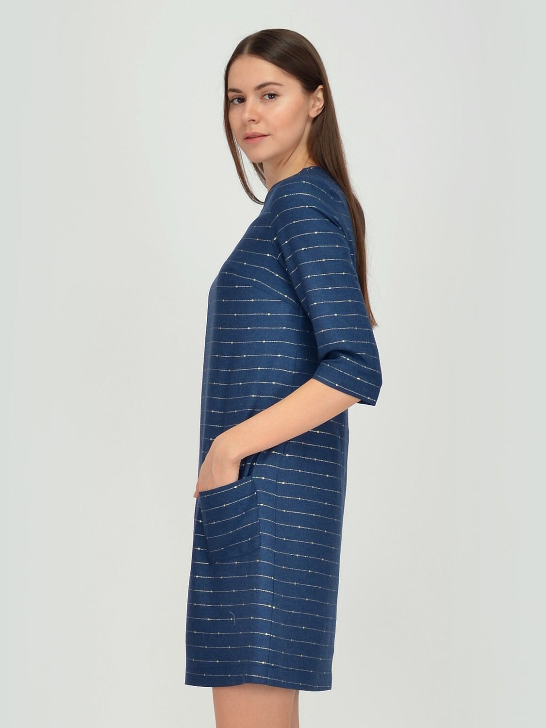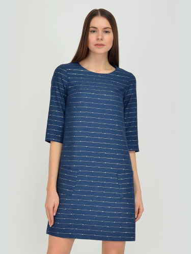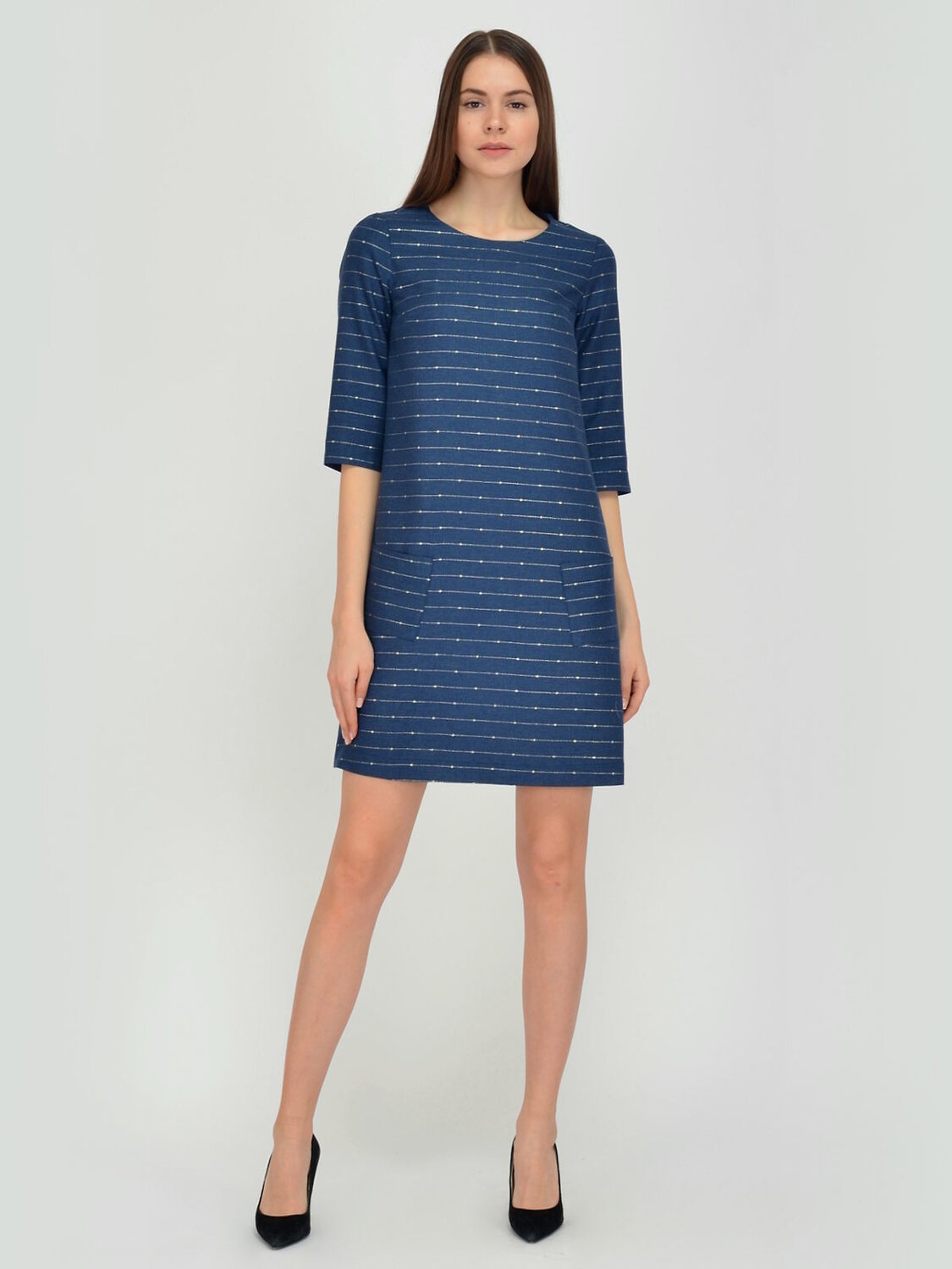 Платье женское полуприлегающего силуэта. Рукав три четверти. На полочке накладные карманы. Платье на подкладе.