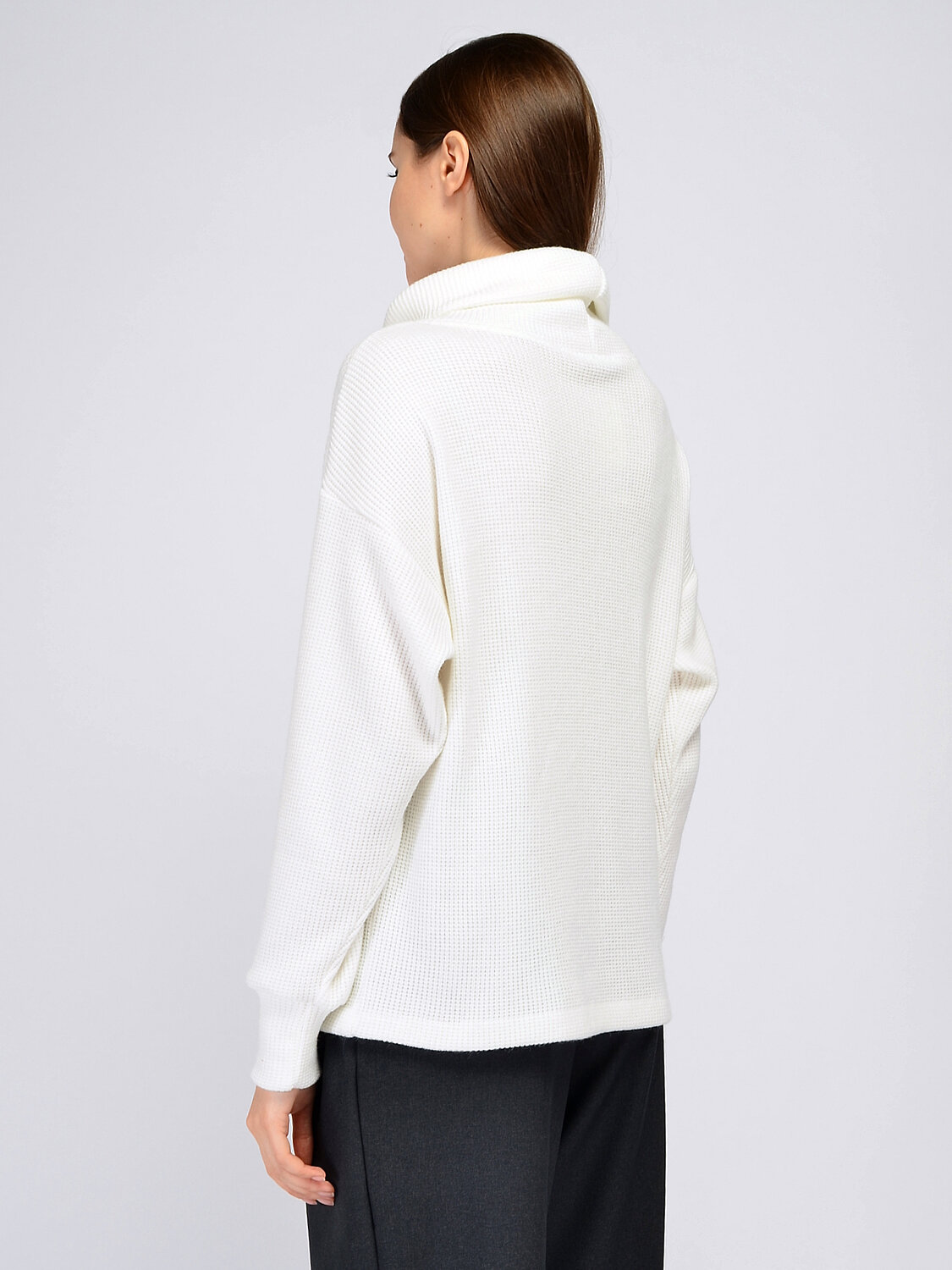 Джемпер с воротником хомутом. Невозможно представить осеннюю и зимнюю пору без уютного и комфортного свитера силуэта оверсайз с крупным воротником. Идеальный силуэт джемпера гармонично дополнит и офисный, и городской образы. Вам не захочется снимать эту вещь, поскольку она выполнена из приятного к телу материала и выглядит идеально. Вырез горловины круглый. Воротник хомут. Рукава длинные. Рукава втачные. Без застежки. Крой прямой. Рекомендована стирка при температуре не более 30С. Свободный джемпер с длинными рукавами носите навыпуск или заправляйте за пояс. Универсальный фасон одинаково удачно сочетается как с классическими вещами, так и с повседневными. Для придания образу торжественности наденьте на шею крупное украшение. Обувь выбирайте исходя из собственных предпочтений и мероприятия.