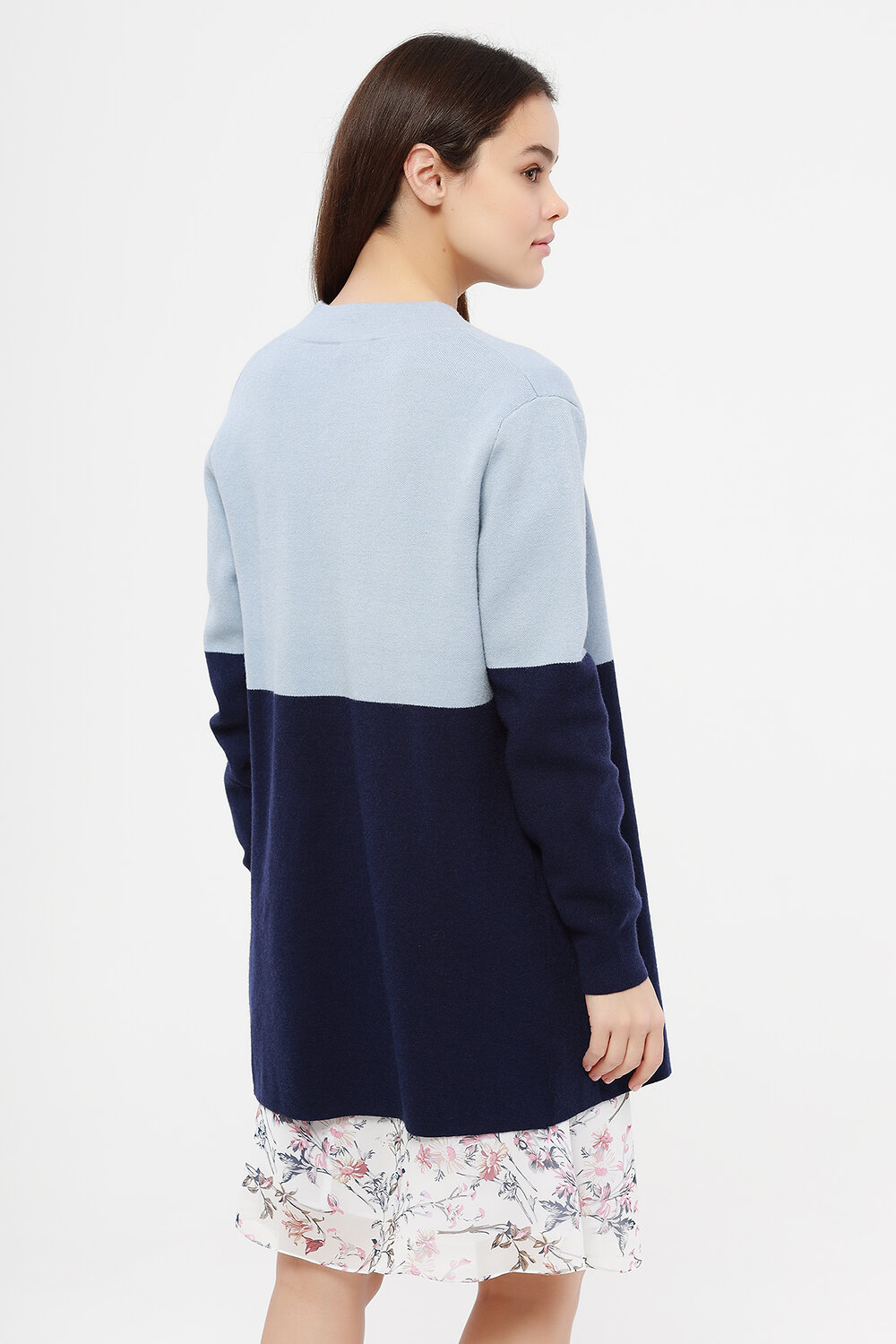 Комбинированный мягкий, плотный вязаный женский кардиган с длинным рукавом. Рукава, низ изделия оформлены резинкой ..