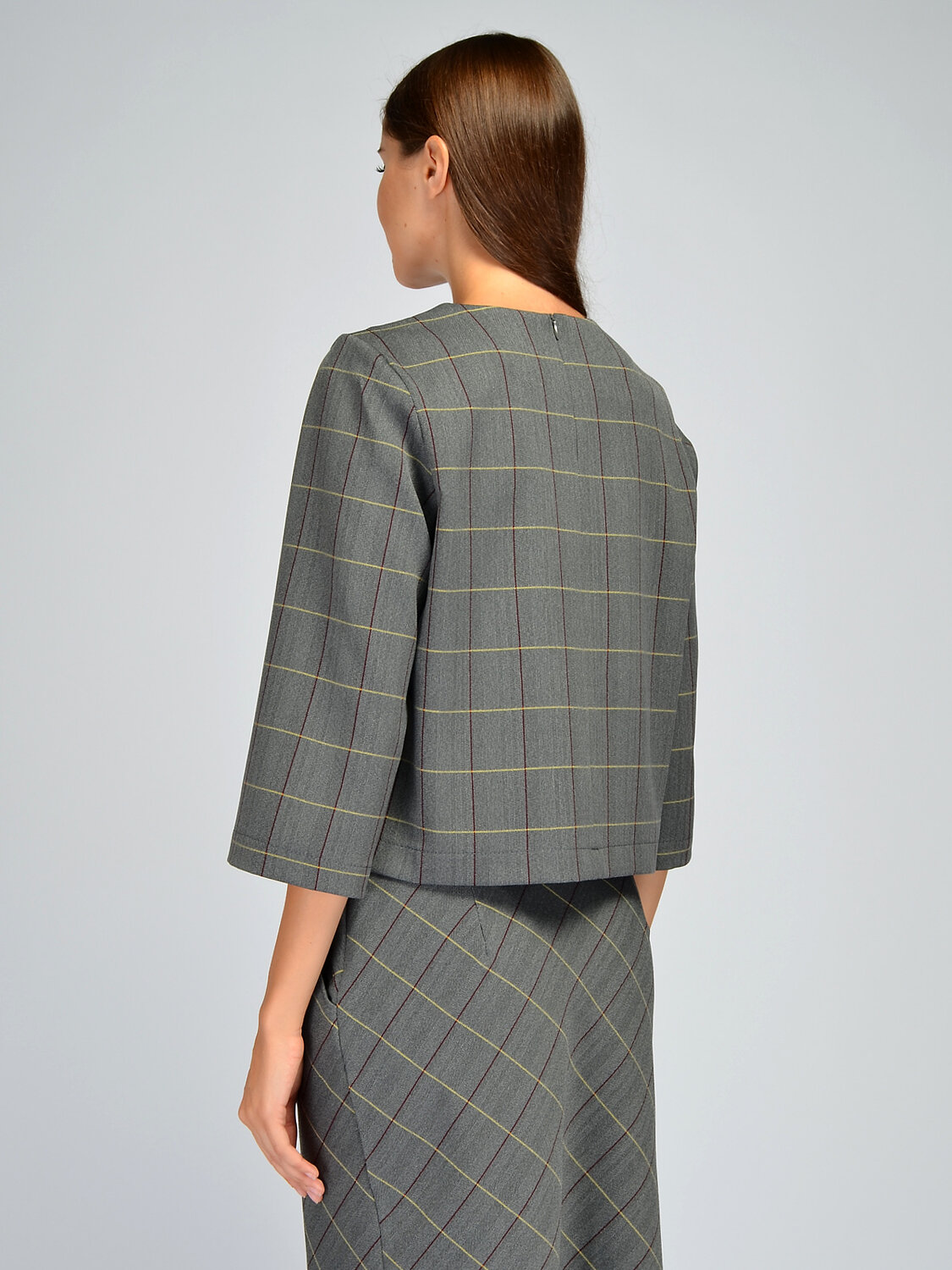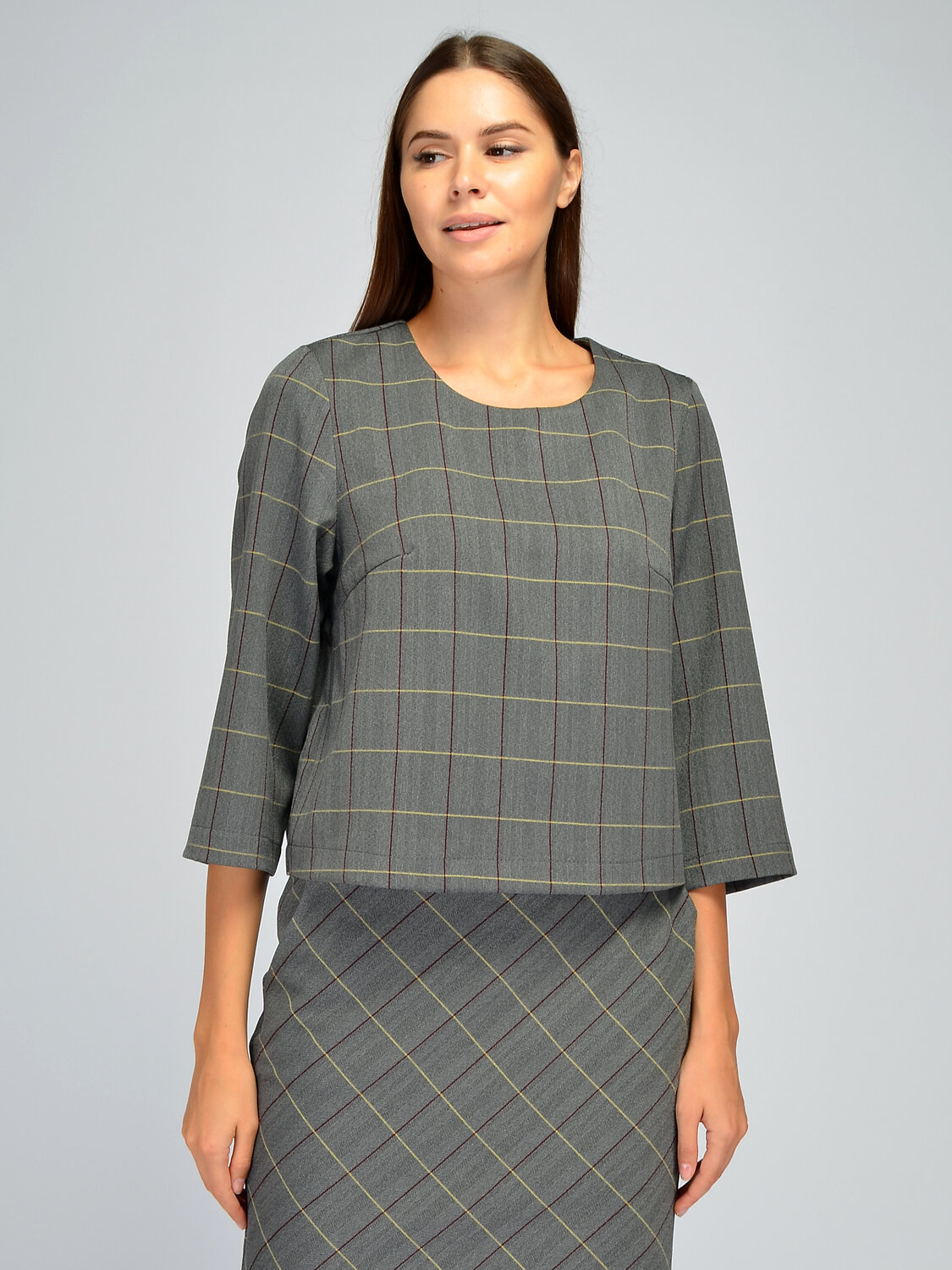 Свободная блузка в клетку станет важной частью Вашего гардероба в прохладное время года. Изящный округлый вырез горловины не давит на шею, а вытачки на груди позволяют изделию прекрасно сидеть на любой фигуре. Изделие имеет широкие укороченные рукава, которые не сковывают движения и не мешают в течение дня. Данная модель застегиваются на потайную молнию на спине. Стильная клетчатая блузочка идеально сочетается с комплектной юбкой из нашей коллекции, создавая гармоничный законченный образ для работы, деловой встречи или торжественного события, если обыграть комплект подходящими аксессуарами и украшениями. Базовую модель в благородных расцветках легко комбинировать с различными предметами из Вашего гардероба. Это могут быть однотонные брюки или юбки разных фасонов, обувь на высоком или низком ходу. Изделие выпускается в широком размерном ряду, предусмотрены большие размеры. Универсальная модель придется по вкусу как молодым девушкам, так и взрослым женщинам, которые предпочитают строгий и при этом женственный стиль.