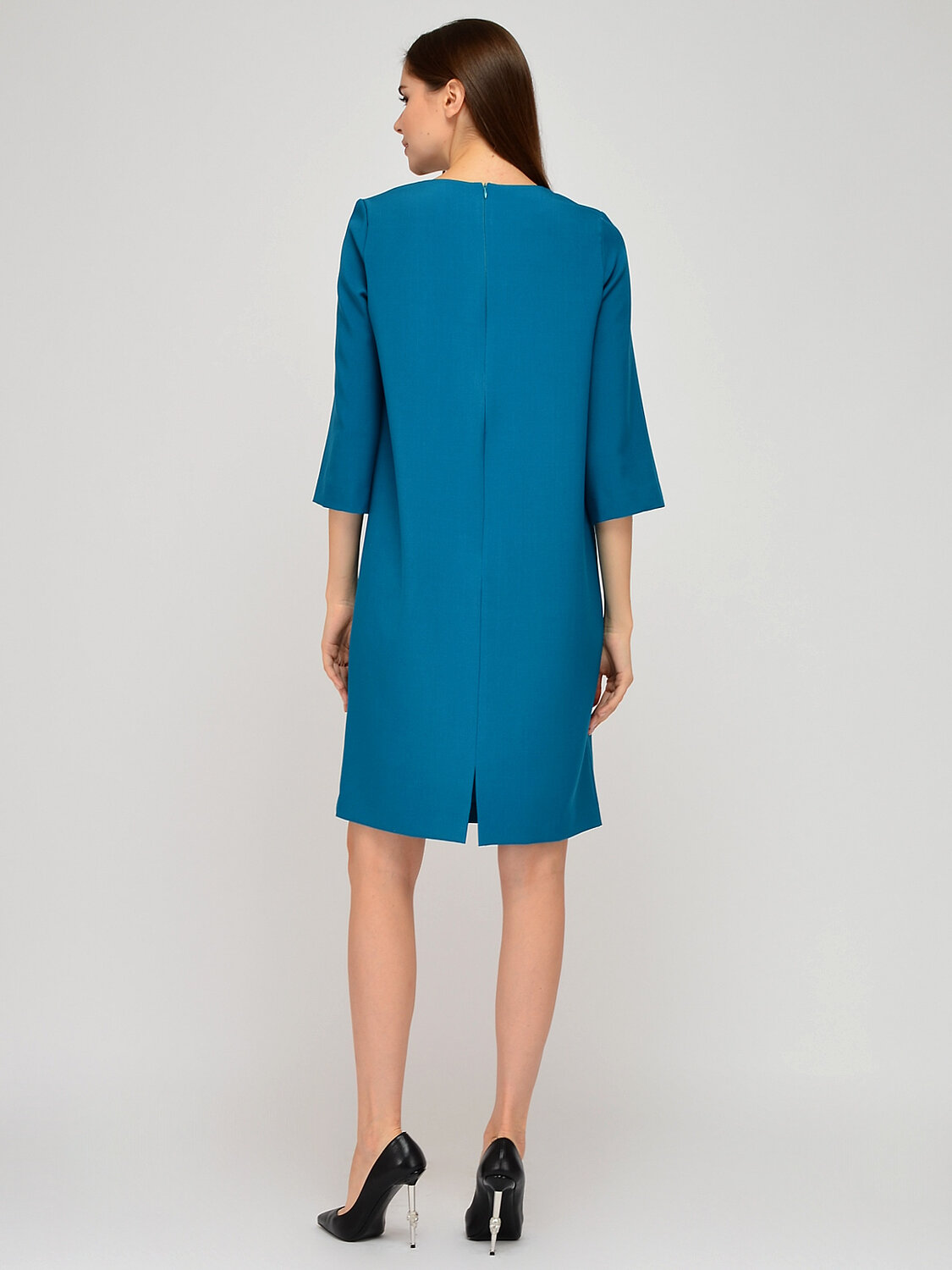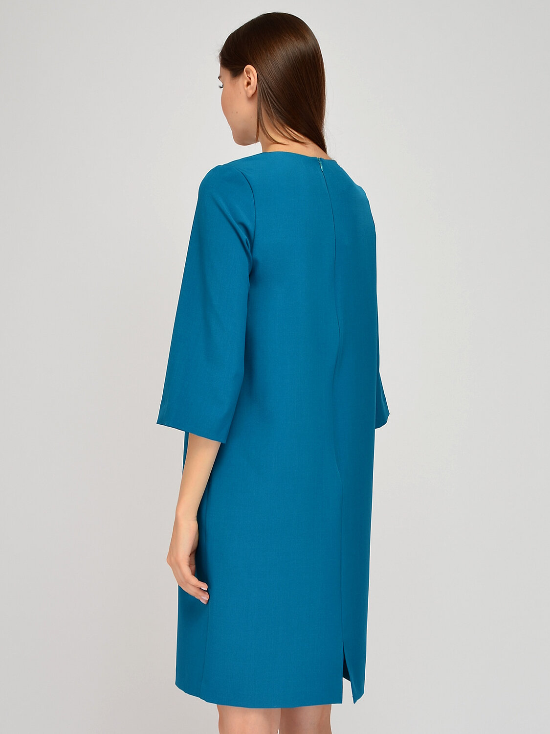 Платье миди прямого кроя.Трикотажное платье миди прямого силуэта прекрасно подойдёт для повседневного стиля или для делового образа. Изящный округлый вырез горловины подчеркивает шею и ключицу. Широкие рукава три четверти элегантно приоткрывают руки и придают свободы движениям. Универсальное платье выгодно подчеркивает достоинства фигуры и скрывает ее недостатки. Вырез горловины - круглый. Длина рукава - до локтя. Рукава втачные. Форма рукавов - широкие. Вид застёжки - молния. Декоративный элемент - разрез. Длина миди. Крой прямой. Без карманов. Рекомендована стирка при температуре не более 30С.Чтобы завершить образ для офиса, сочетайте платье миди с жакетом, строгой обувью и лаконичными уркашениями, а для завершения повседневного стиля, наденьте сверху кардиган, обувь на низком ходу и возьмите с собой крупную сумку. В любом образе Вы будете выглядеть стильно и гармонично.