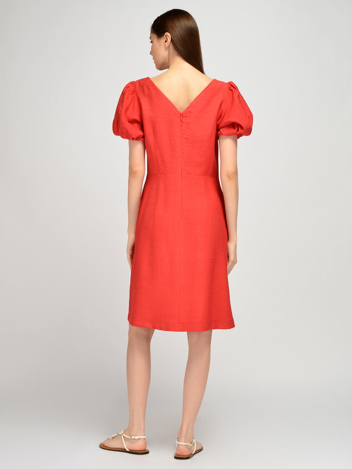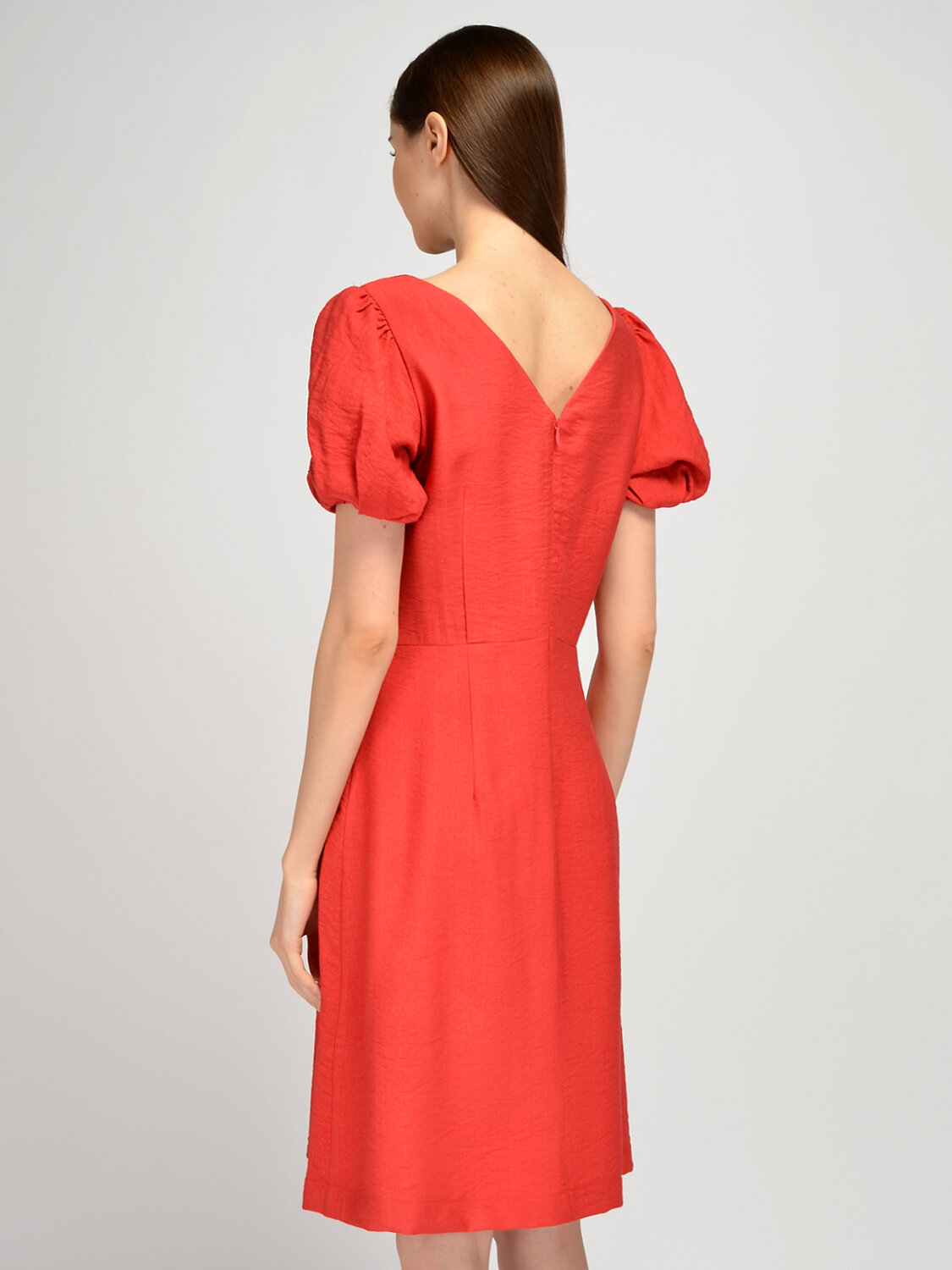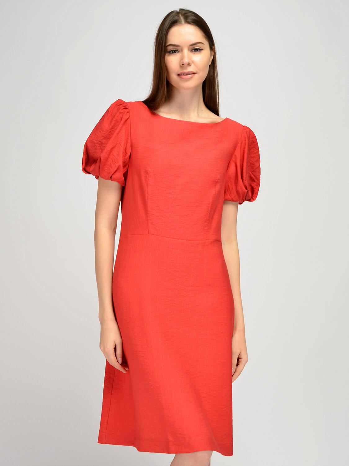 Летнее платье женское с короткими рукавами дополнит романтичные образы для работы или праздников. Изящный округлый вырез горловины лодочка приоткрывает ключицу. Короткие рукава фонарики являются изюминкой легкого платья. Объемные рукава со складками притягивают взгляд и дополняют кокетливый стиль. Приталенное платье миди с вертикальными вытачками от талии идеально сядет на любую фигуру и визуально вытянет силуэт. На спине располагается элегантный V-образный вырез и также вертикальные вытачки. Праздничное платье миди застегивается на потайную молнию. Свободное платье не облегает фигуру, скрывая ее возможные недостатки. Повседневное летнее платье выполнено из легкой дышащей ткани, позволяя Вашей коже дышать и чувствовать себя комфортно в течение всего дня в летний сезон. Лаконичный фасон подойдет как взрослым женщинам, так и молодым девушкам. Универсальная длина ниже колена придется по вкусу дамам любого роста. Легкое летнее платье будет прекрасно смотреться с обувью на высоком ходу, например, с туфлями-лодочками или босоножками. Если Вы собираетесь на торжественное мероприятие, завершите образ украшениями и аксессуарами.