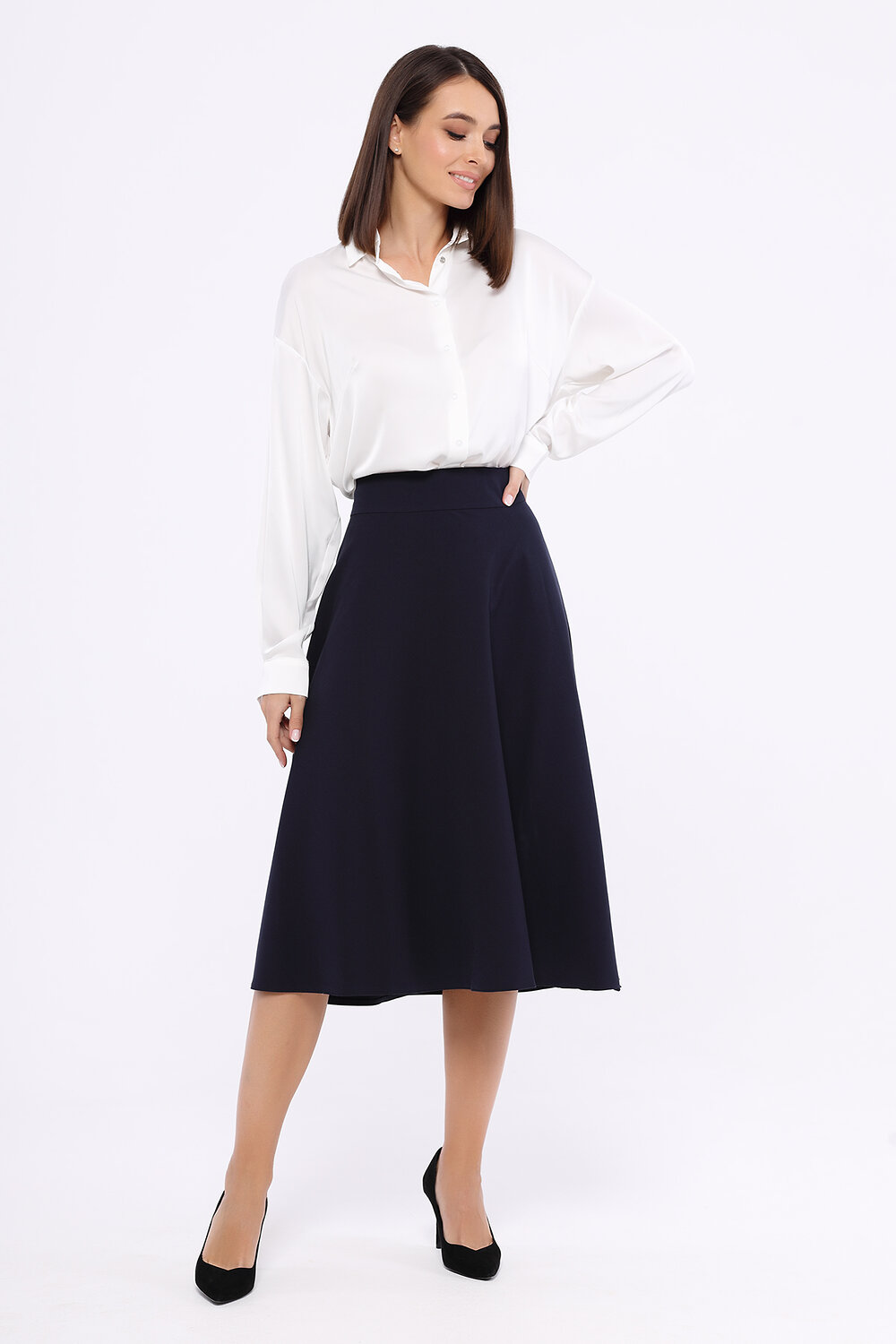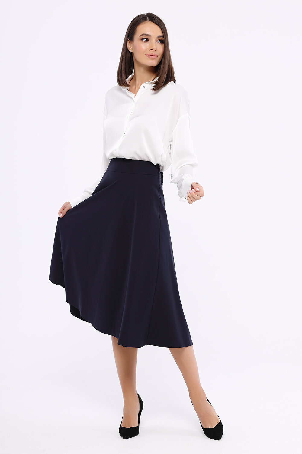 С помощью струящейся блузки с отложным воротником можно создать образ в стиле спортивный шик. Заправьте её в джинсы на высокой талии, наденьте туфли с острым носом на высоком или на низком ходу, и Вы будете неотразимы. А дополнив блузку жакетом, юбкой карандаш или классическими брюками, Вы создадите строгий образ.