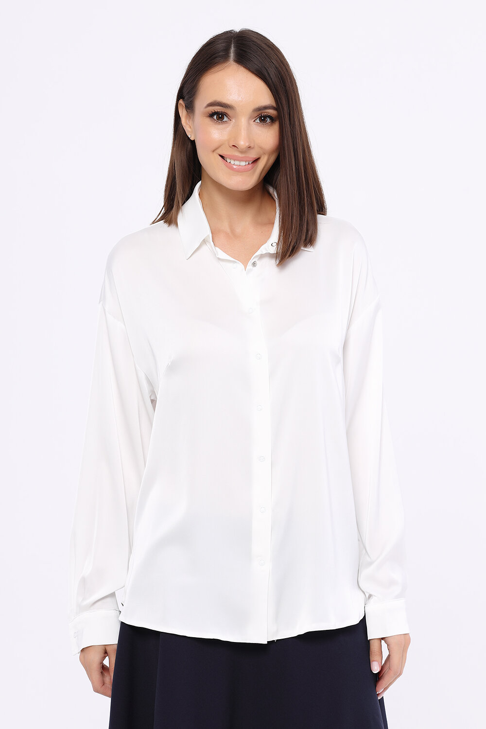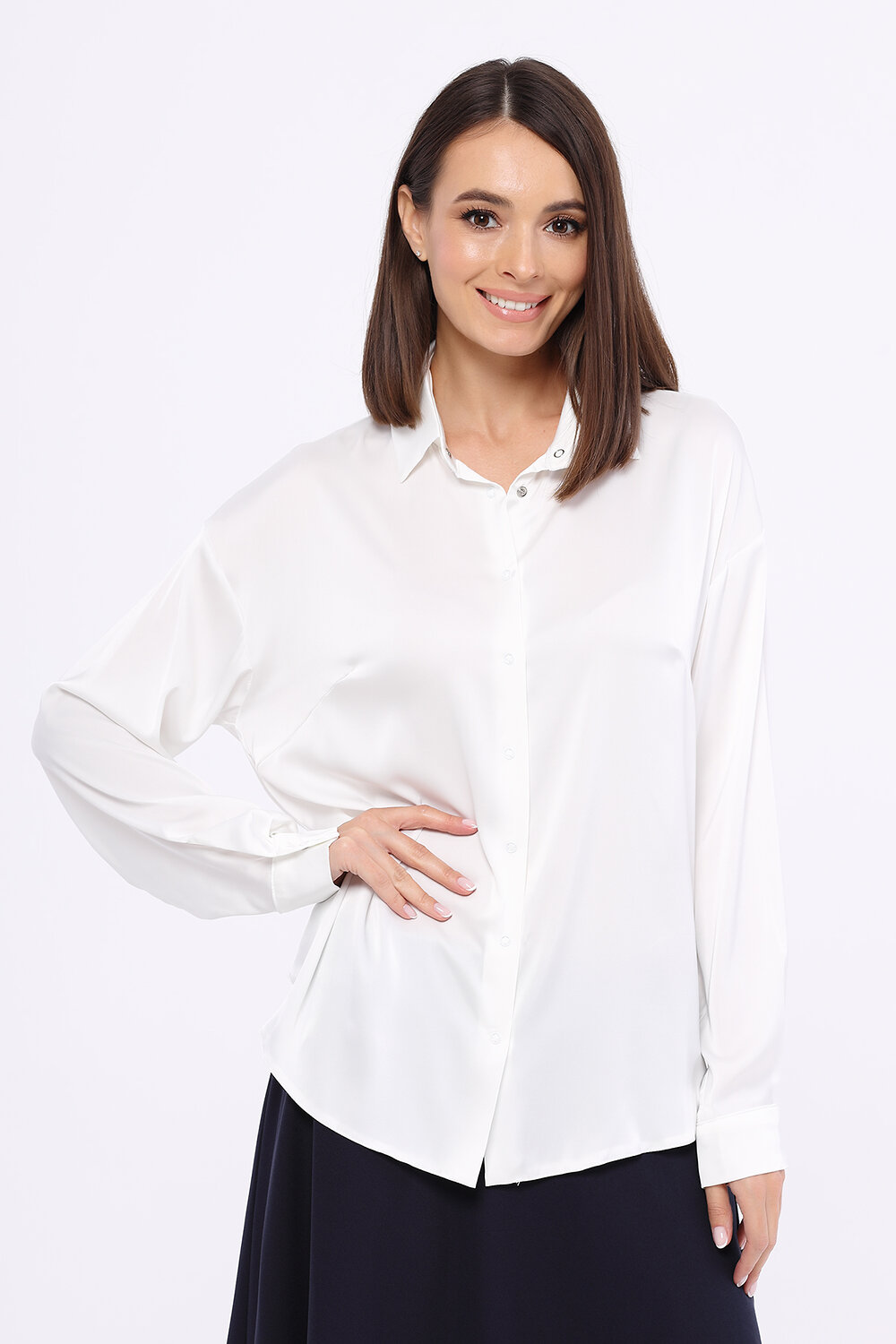 Блузка свободного кроя с воротником-стойкой.Прямая блузка с воротником-стойкой - беспроигрышный вариант для прохладной поры. Аккуратный воротник-стойка и длинные рукава с декоративными защипами составляют строгий и современный стиль. Ткань блузки лёгкая и воздушная, что придаёт образу утончённости и элегантности. Блузка, застёгивающаяся на кнопки, приятна к телу, её захочется надеть на различные мероприятия.Вырез горловины - круглый. Отделка горловины - воротник. Воротник отложной. Рукава длинные. Вид застёжки - кнопки. Крой прямой. Рекомендована стирка при температуре не более 30С.
