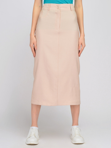 Хлопковая юбка миди. Лаконичная юбка миди создана для обеспечения максимального комфорта в жаркое время. Высокая посадка и длина миди изящно вытягивают силуэт. На поясе расположены шлевки, в которые удобно вдевается ремень. Для удобства сзади на юбке находится шлица, а на передней части юбки накладные карманы. В составе юбки миди хлопок высочайшего качества, благодаря чему Вы можете быть уверены, что изделие прослужит Вам не один сезон. Вид застежки молния. Длина миди. Крой прямой. Карманы накладные. Конструктивный элемент шлица. Рекомендована стирка при температуре не более 30С. Хлопковая юбка прямого кроя дополнит стильный и комфортный офисный или повседневный образ. Дополните юбку миди блузкой и закрытой обувью, чтобы получить деловой образ. А если Вы наденете свободную футболку, заправленную за пояс, босоножки или кеды, получится современный городской образ. Не забудьте дополнить свой образ подходящей сумкой и ремешком.