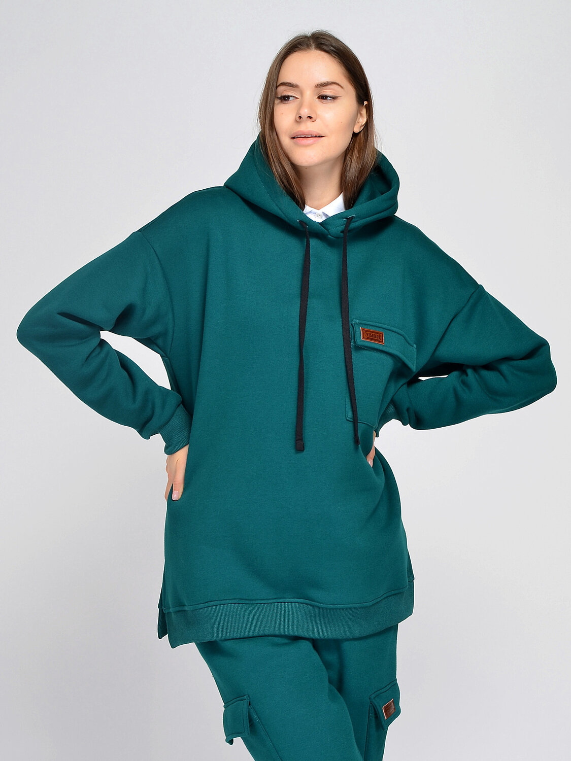Теплое спортивное худи с капюшоном, накладным карманом с фирменным логотипом и разрезами по бокам составит стильный спортивный образ на прохладную погоду.