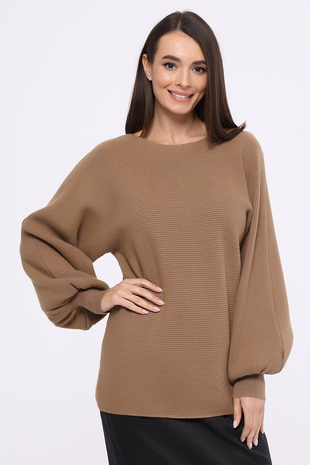 Джемпер с объемными рукавами.Изящный джемпер с округлым вырезом прямого кроя придется по вкусу каждой современной девушке. Деликатный вырез приоткрывает ключицу, придавая образу женственности. Ключевой притягательный элемент джемпера - его рукава. Рукава цельнокроенные, выполнены в форме летучая мышь, объемные по всей длине, с аккуратными манжетами. Вырез горловины круглый. Без отделки горловины. Рукава длинные. Рукава цельнокроенные. Форма рукава летучая мышь. Без застежки. Без воротника. Крой прямой. Ручная стирка при t не более 30С.Придай легкости повседневному, офисному или торжественному образу. Дополни джемпер подходящими украшениями, обувь подбирайте на высоком или на низком ходу, исходя из случая. Носите джемпер навыпуск или заправленным за пояс.