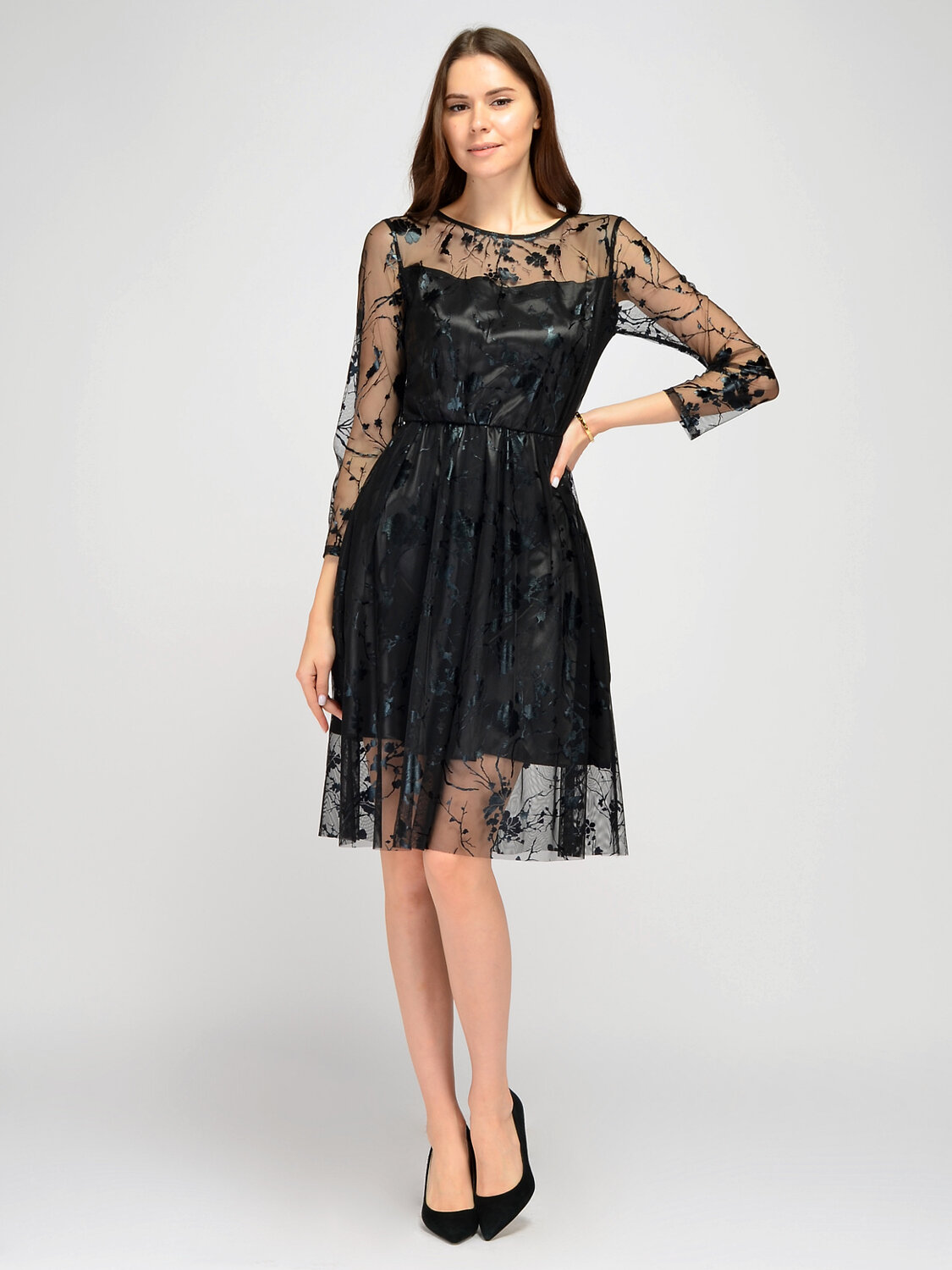 Нарядное платье миди с акцентом на талии подарит Вам незабываемый образ для вечеринки или любого торжественного случая. Платье до колен имеет округлый вырез горловины лодочка. Рукава у стильного платья длинные и имеют небольшой запас по объему, не сковывая движений. На талии расположена нетугая резинка, придавая Вашему силуэту форму песочные часы, моделируя женственный силуэт. При желании Вы можете надеть тонкий ремешок. Поскольку платье выполнено из легкой прозрачной ткани, у данной модели предусмотрено нижнее платье с квадратным вырезом горловины. Сетка расшита различными декоративными деталями: пайетками, вышивкой. Яркое праздничное платье красиво переливается на свету и создает романтичный образ для свидания, свадьбы, дня рождения или театра. Эффектное вечернее платье идеально сочетается с обувью на каблуке (туфлями, ботильонами, сапожками). Завершите нарядный образ украшениями и аксессуарами. Блестящее платье выпускается в широком размерном ряду, в наличии большие размеры. Платье с блестками будет отлично смотреться на взрослых женщинах, молодых девушках и даже подростках. Подарите себе прекрасное настроение, выбрав яркую новинку, в которой от Вас невозможно будет оторвать взгляд!