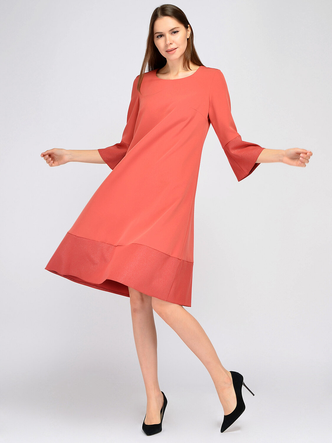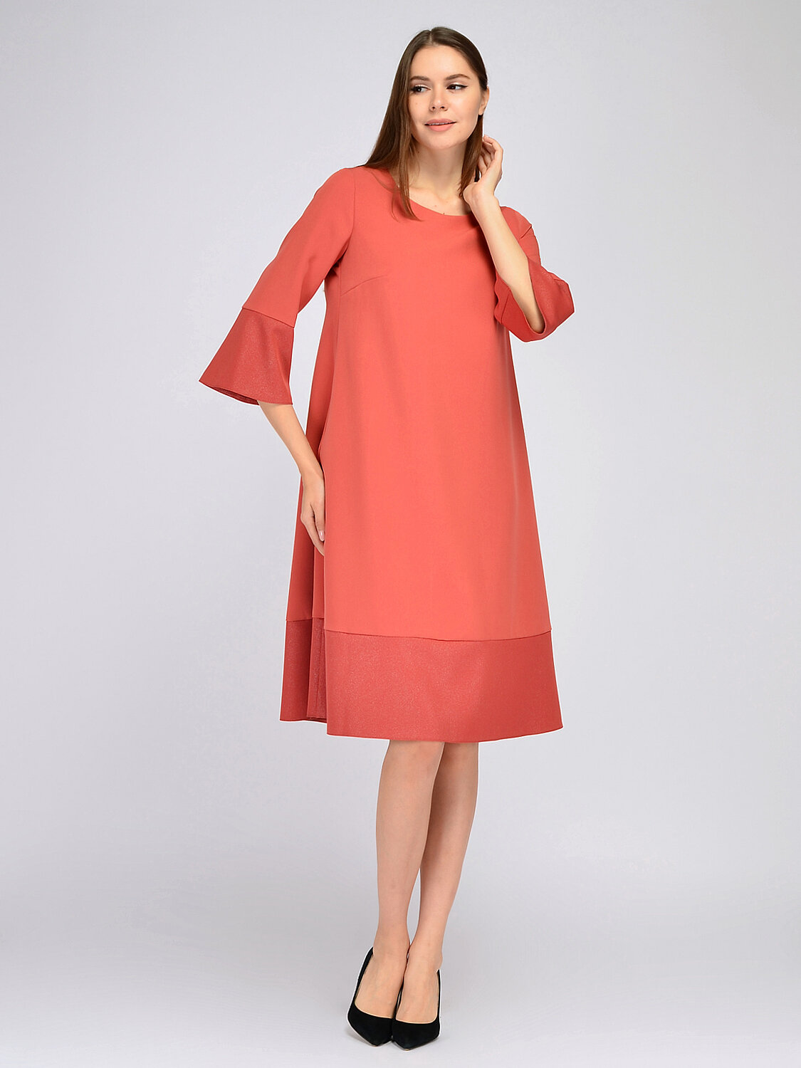 Праздничное платье миди. Если Вы ищете идеальное платье для торжественных мероприятий, обратите внимание на лаконичное платье миди формы трапеция. Аккуратный округлый вырез подчеркнет линию шеи и ключицу, а рукава три четверти комфортной широкой формы позволят Вам чувствовать себя раскованно в движениях.Вырез горловины круглый. Без отделки горловины. Рукава укороченные три четверти. Рукава втачные. Форма рукава широкий. Вид застежки молния. Длина миди. Крой расклешенный к низу. Модель платья трапеция. Рекомендована стирка при температуре 30С.Изящное платье миди расклешенное к низу подойдет любому типу фигуры. Завершите нарядный образ яркими украшениями и обувью на высоком ходу. Соберите волосы в высокую прическу или оставьте распущенными. Незабываемый образ на вечеринке Вам будет обеспечен.