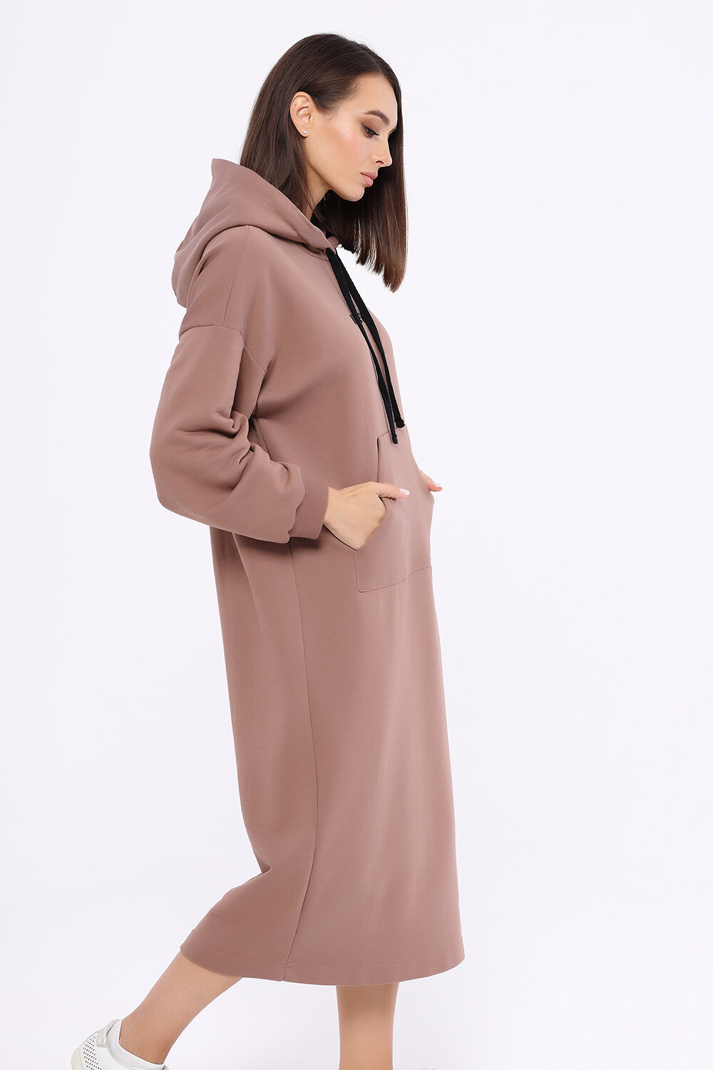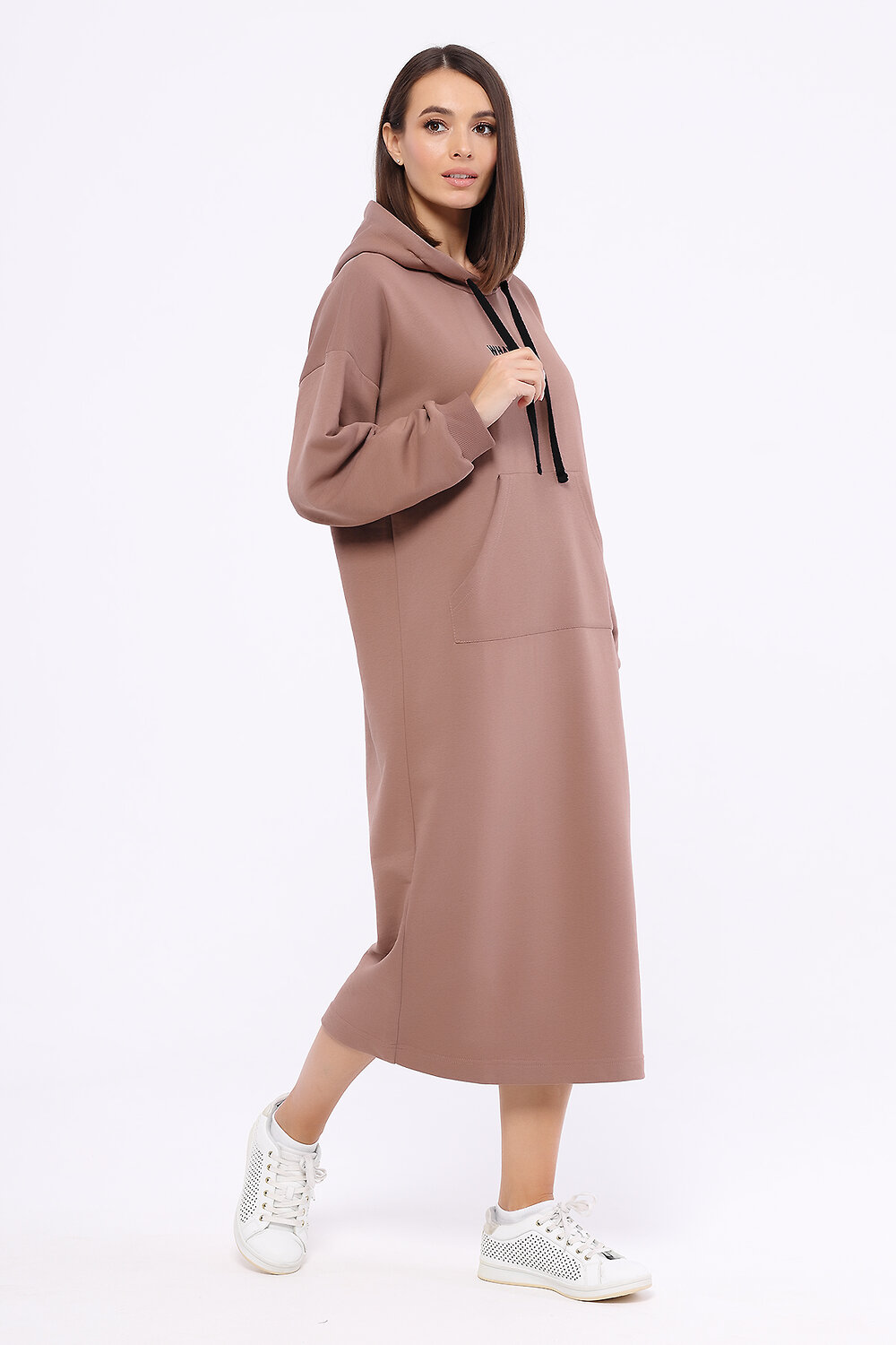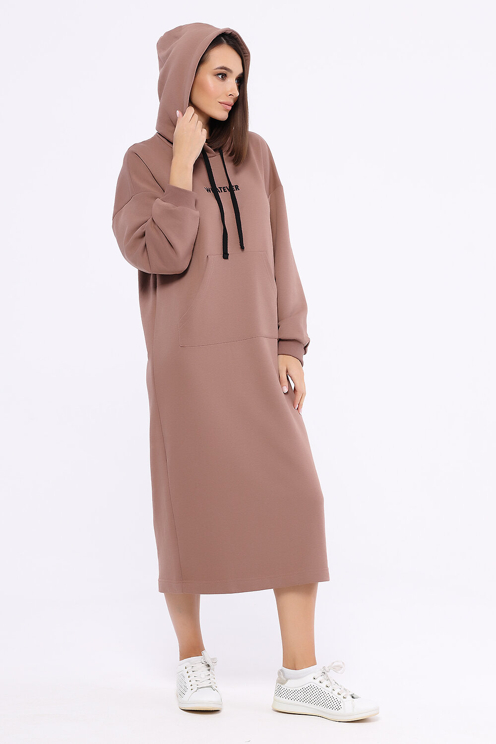 Спортивное платье миди с капюшоном и карманом «кенгуру». Осенний гардероб каждой девушки нуждается в уютном спортивном платье миди. Лаконичный силуэт платья из коллекции Актив дополнен вышивкой надписи на передней его части. Идеальная длина миди, функциональный карман «кенгуру», объёмный капюшон и длинные рукава придадут образу уюта. Вырез горловины - круглый. Отделка горловины - капюшон. Рукава длинные. Рукава втачные. Без застёжки. Декоративный элемент - вышивка. Длина миди. Крой прямой. Конструктивный элемент - карман «кенгуру». Рекомендована стирка при температуре не более 30С.Современное спортивное платье миди из коллекции Актив подарит Вам необходимое в прохладный сезон ощущение защищённости и комфорта. Выбирайте платье миди с капюшоном для прогулки, похода в кино, в гости или для любого активного мероприятия. Завершите образ обувью на низком ходу и подберите подходящую поясную сумку или рюкзак.