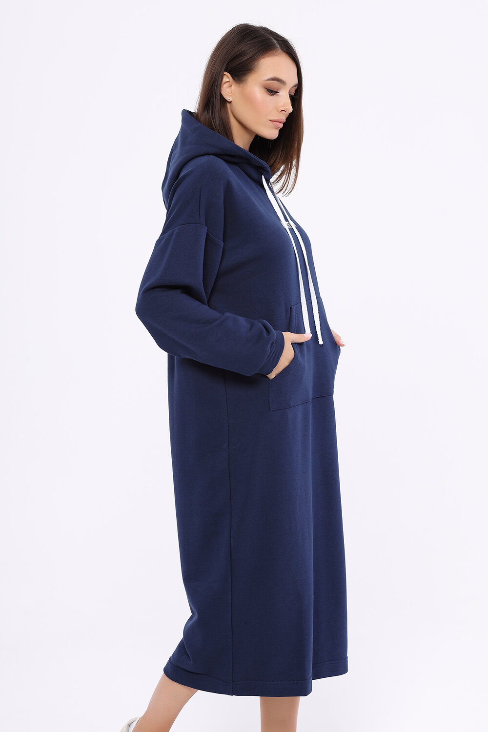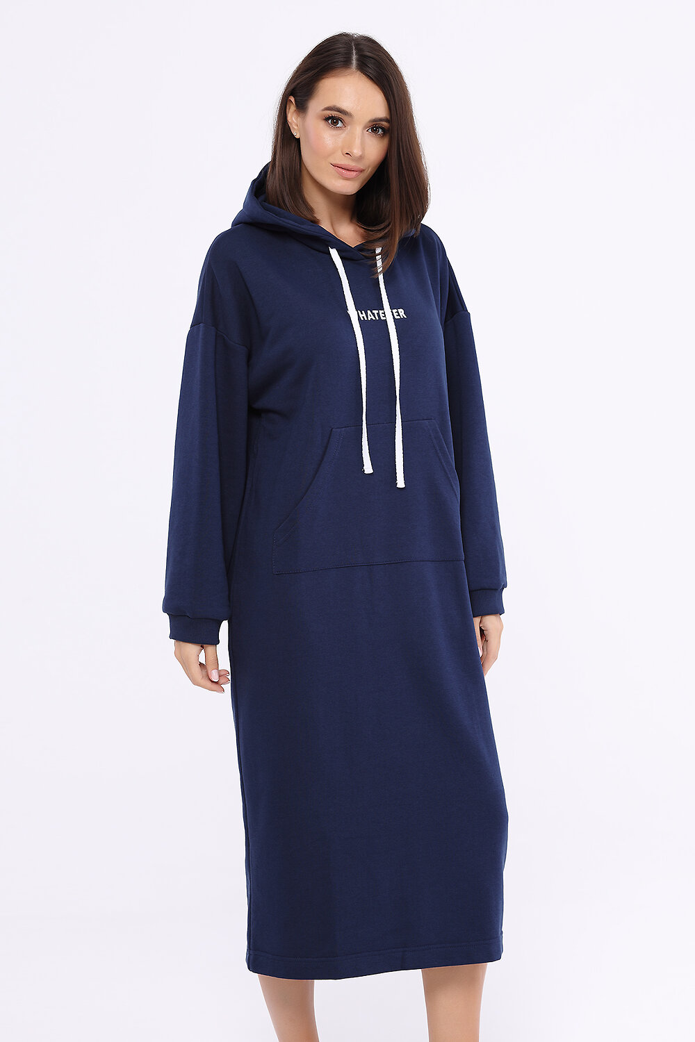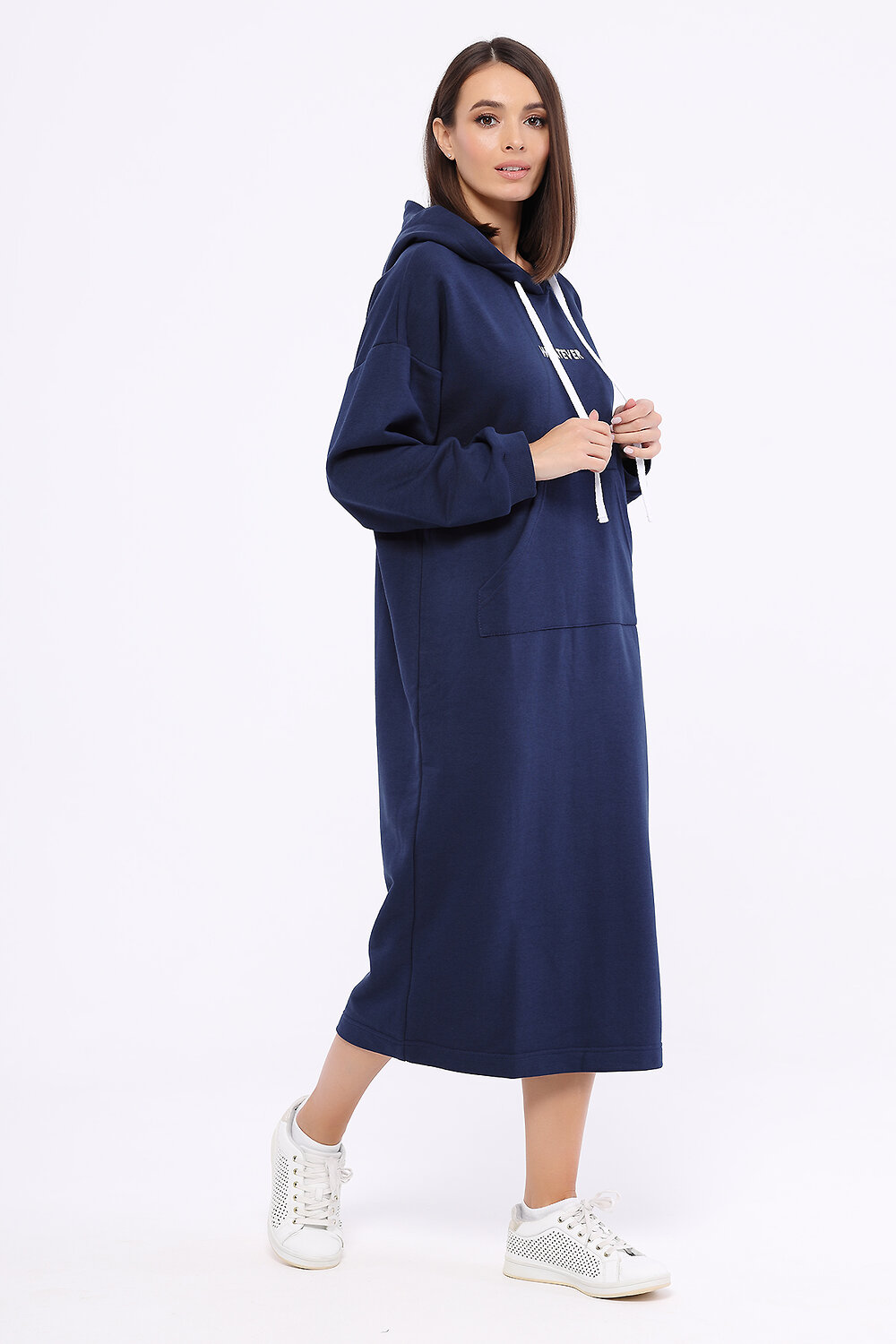 Спортивное платье миди с капюшоном и карманом «кенгуру». Осенний гардероб каждой девушки нуждается в уютном спортивном платье миди. Лаконичный силуэт платья из коллекции Актив дополнен вышивкой надписи на передней его части. Идеальная длина миди, функциональный карман «кенгуру», объёмный капюшон и длинные рукава придадут образу уюта. Вырез горловины - круглый. Отделка горловины - капюшон. Рукава длинные. Рукава втачные. Без застёжки. Декоративный элемент - вышивка. Длина миди. Крой прямой. Конструктивный элемент - карман «кенгуру». Рекомендована стирка при температуре не более 30С.Современное спортивное платье миди из коллекции Актив подарит Вам необходимое в прохладный сезон ощущение защищённости и комфорта. Выбирайте платье миди с капюшоном для прогулки, похода в кино, в гости или для любого активного мероприятия. Завершите образ обувью на низком ходу и подберите подходящую поясную сумку или рюкзак.