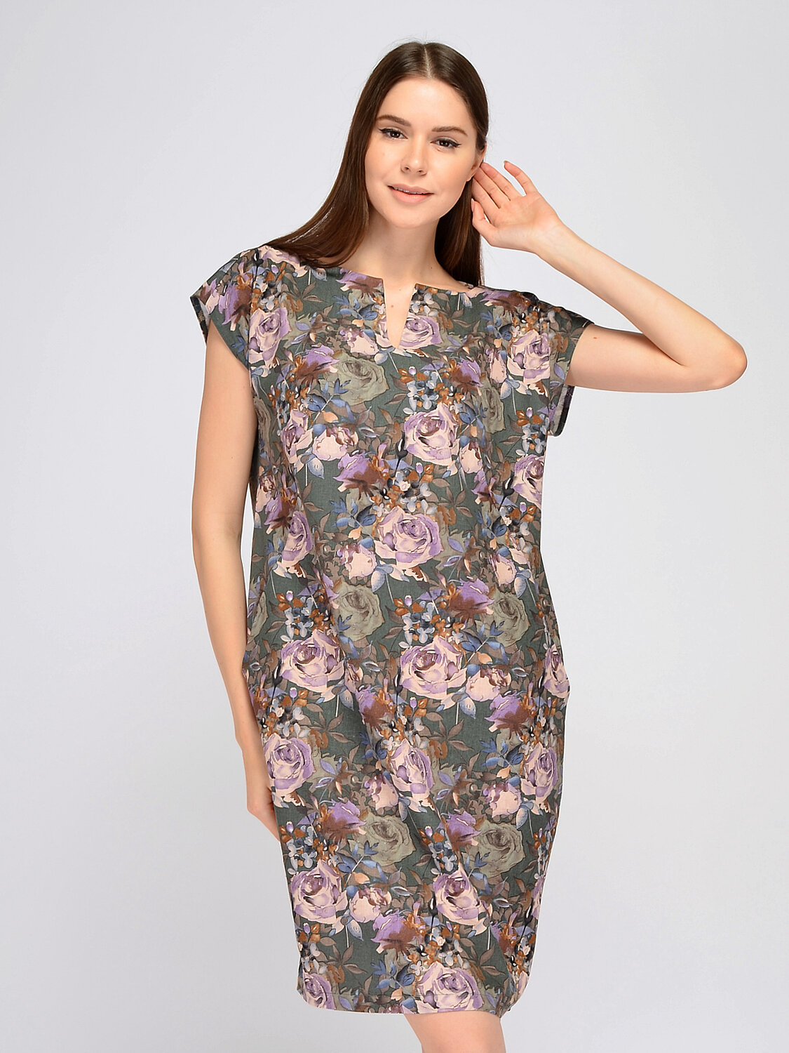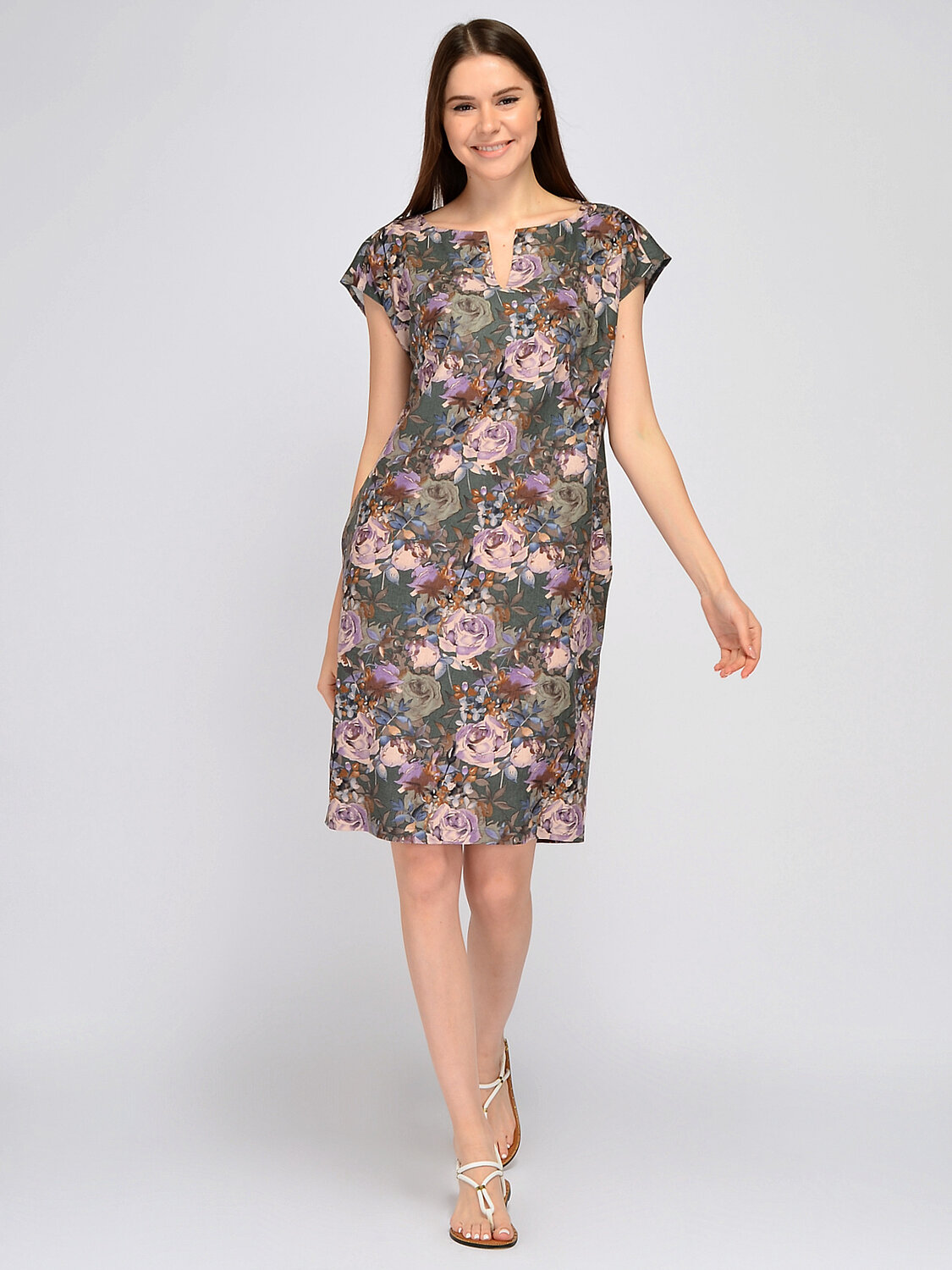 Прямое платье с коротким рукавом - идеальная модель на лето. Лаконичный дизайн платья миди дополнен яркими принтами. Изысканный фигурный вырез горловины подчеркнет красоту шеи и ключицы. На задней части платья располагается разрез, благодаря которому Вы будете чувствовать себя комфортно при ходьбе.Вырез горловины - фигурный. Рукав короткий. Без застёжки. Длина миди. Конструктивный элемент - разрез. Крой прямой. Рекомендована стирка при температуре не более 30С.