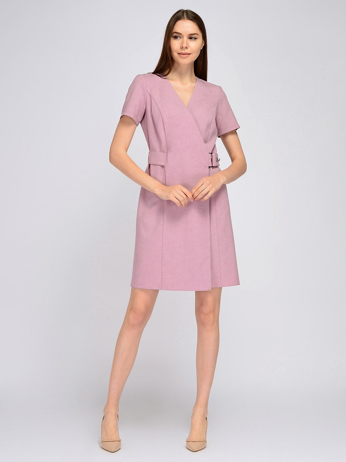 Приталенное платье мини на запах станет универсальной моделью Вашего гардероба. Лаконичный крой позволит надевать платье и в офис, и на торжественное мероприятие, и на прогулку. Длина мини подчеркнёт диену Ваших ног, а V-образный вырез изящно открывает ключицу. Платье с запахом делает акцент на талии и визуально делает её уже. Платье мини с коротким рукавом гармонично дополнит как деловой, так и романтичный образы.