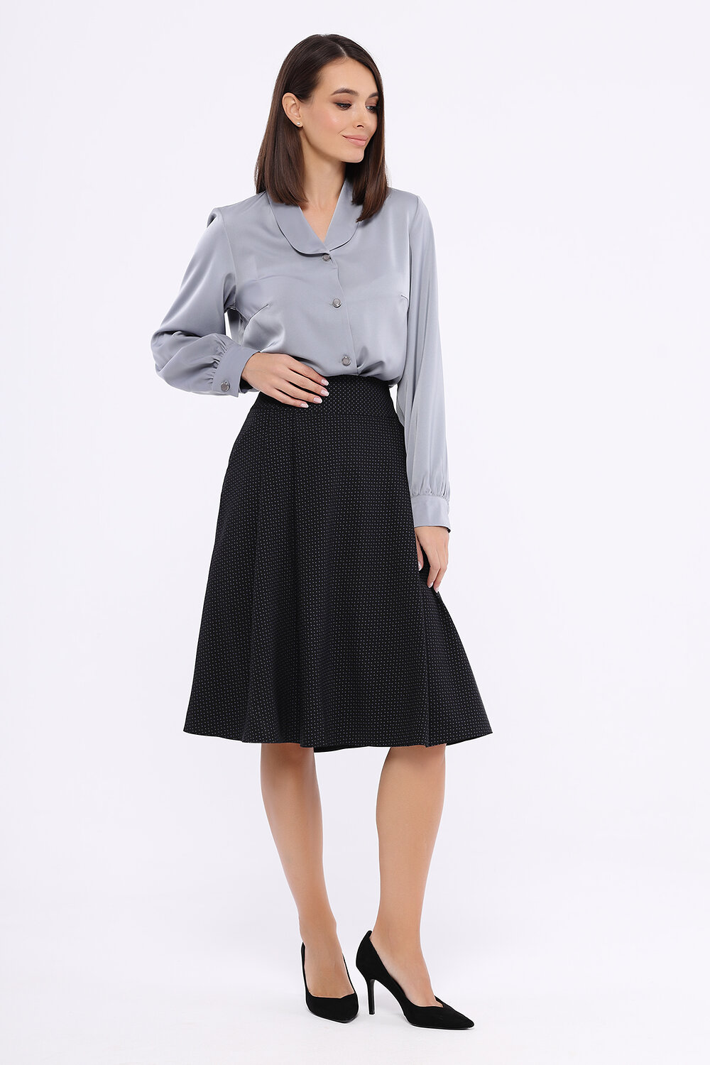Прямая блузка с отложным воротником.Струящаяся блузка с длинными рукавами - прекрасный выбор для межсезонья. Благодаря аккуратному V-образному вырезу линия шеи визуально вытягивается. Прямой крой и свободные рукава обеспечат идеальную посадку блузки. Блузка выполнена в сложных интересных цветовых оттенках, соответствующих современной моде.V-образный вырез. Отделка горловины - воротник. Воротник отложной. Длина рукава - длинный. Крой прямой. Рукава втачные. Рекомендована стирка при температуре не более 30С.Элегантная блузка из лёгкого материала совместима с различными по стилю компаньонами. Джинсы с высокой посадкой и туфли-лодочки обеспечат стильный городской образ для ежедневных дел. А классические брюки и юбки в сочетании с обувью на высоком ходу завершат строгий современный образ для деловых встреч. Блузка замечательно смотрится заправленной за пояс.