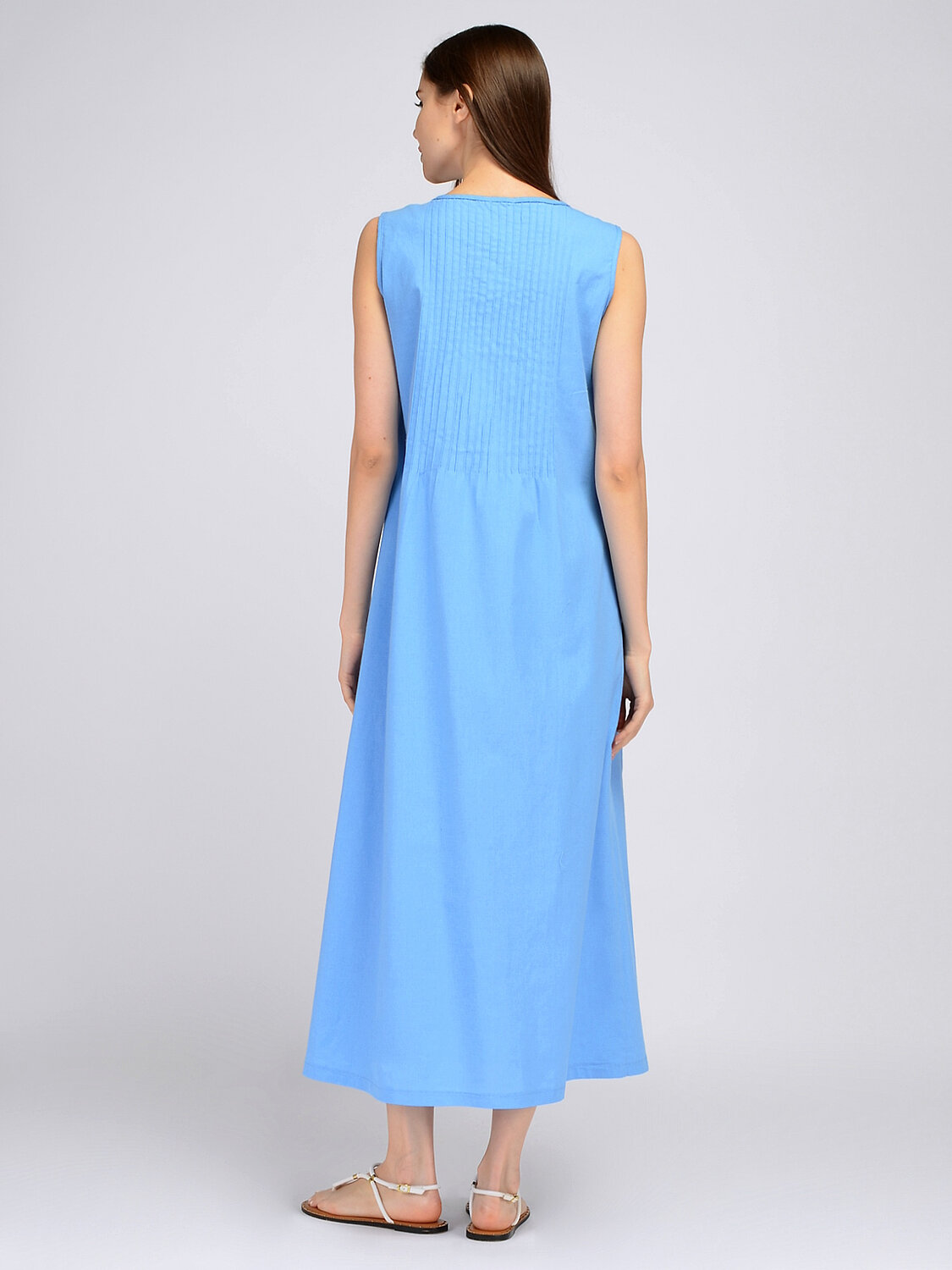 Платье макси без рукавов.Полуприлегающее платье без рукавов - идеальная летняя модель. В составе платья лён, благодаря которому Вы будете чувствовать себя максимально комфортно в жаркое время года. На спинке и полочке расположены декоративные защипы до линии талии. А для удобства современной девушки на платье предусмотрены карманы в шве Без отделки горловины. Без рукава. Без застёжки. Длина макси. Крой прямой. Карманы в шве. Платье женское полуприлегающего силуэта без рукавов. На спинке и полочке защипы до линии талии. В боковых швах карманы. Рекомендована стирка при температуре не более 30С.Лёгкое летнее платье без рукава Вы сможете надеть летом и в офис, и на прогулку, и на свидание. Надев джинсовку и спортивную обувь на низком ходу и завязав высокий хвост, получится комфортный образ в стиле кэжуал. А чтобы завершить романтичный образ, наденьте босоножки, распустите волосы и при необходимости накиньте на плечи палантин.