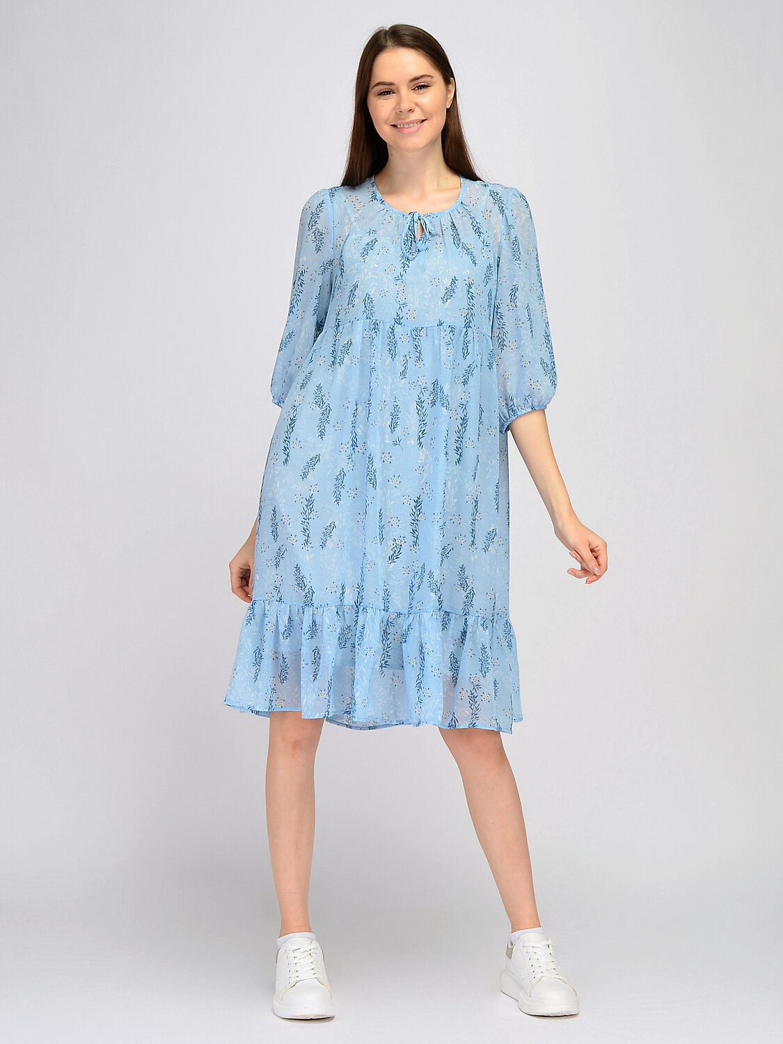 В составе платья полиэстер 100%. Вырез горловины - круглый. Без отделки горловины. Рукава до локтя. Без застёжки. Декоративный элемент - оборки. Длина миди. Подкладка - нижнее платье. Крой широкий. Модель платья - прямое. Покрой свободный. Без карманов. Рукав втачной. Рекомендована стирка при температуре не более 30С.