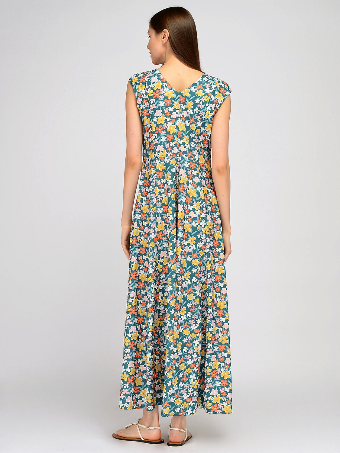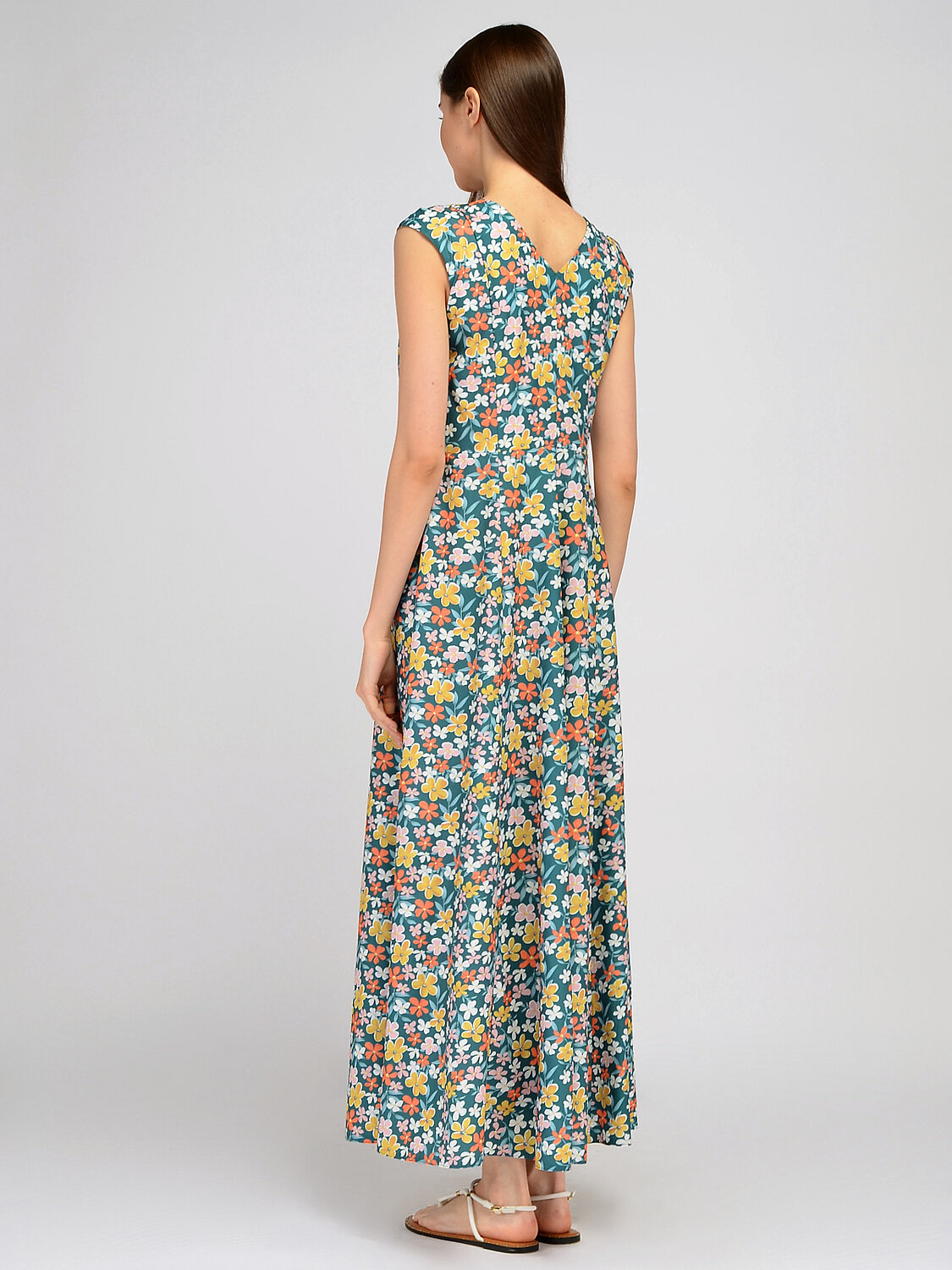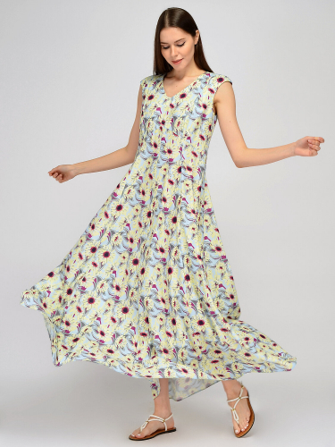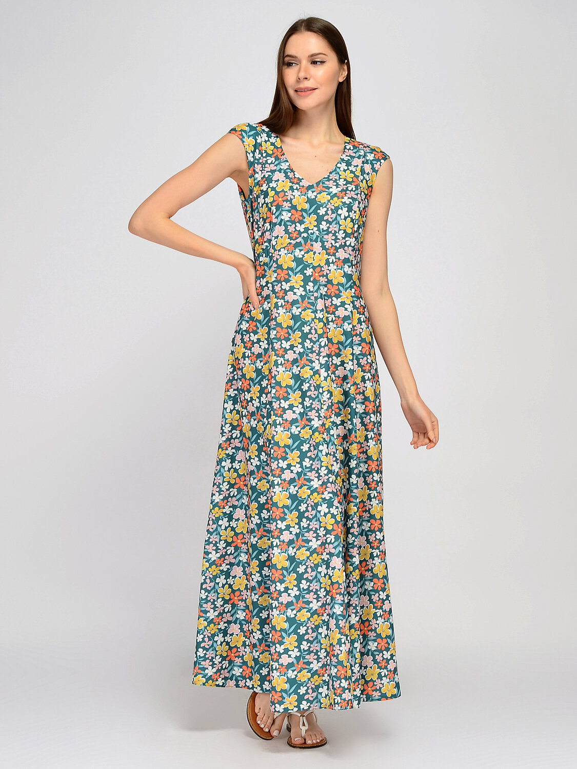 Приталенное платье макси без застёжки подарит ощущение лёгкости и комфорта в жаркий сезон. Лаконичный фасон выполнен в ярких цветочных расцветках, которые идеально подойдут для летнего гардероба. Платье макси без рукавов с широкой юбкой позволит Вам чувствовать себя свободно на прогулке и на отдыхе.