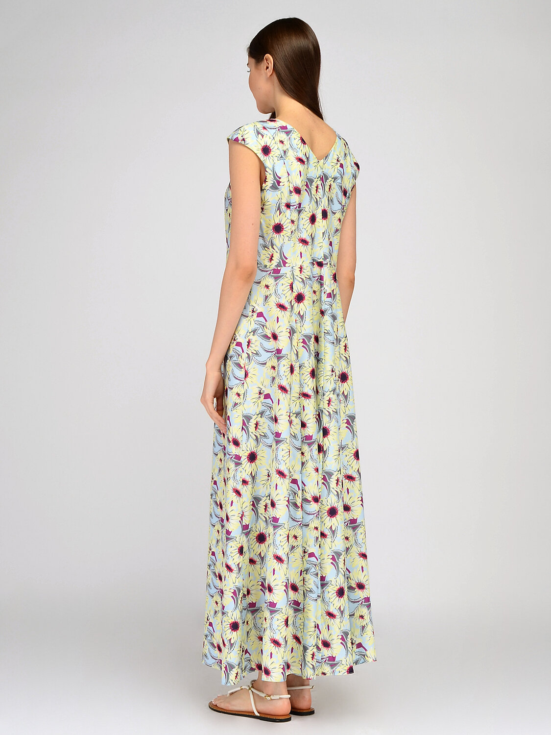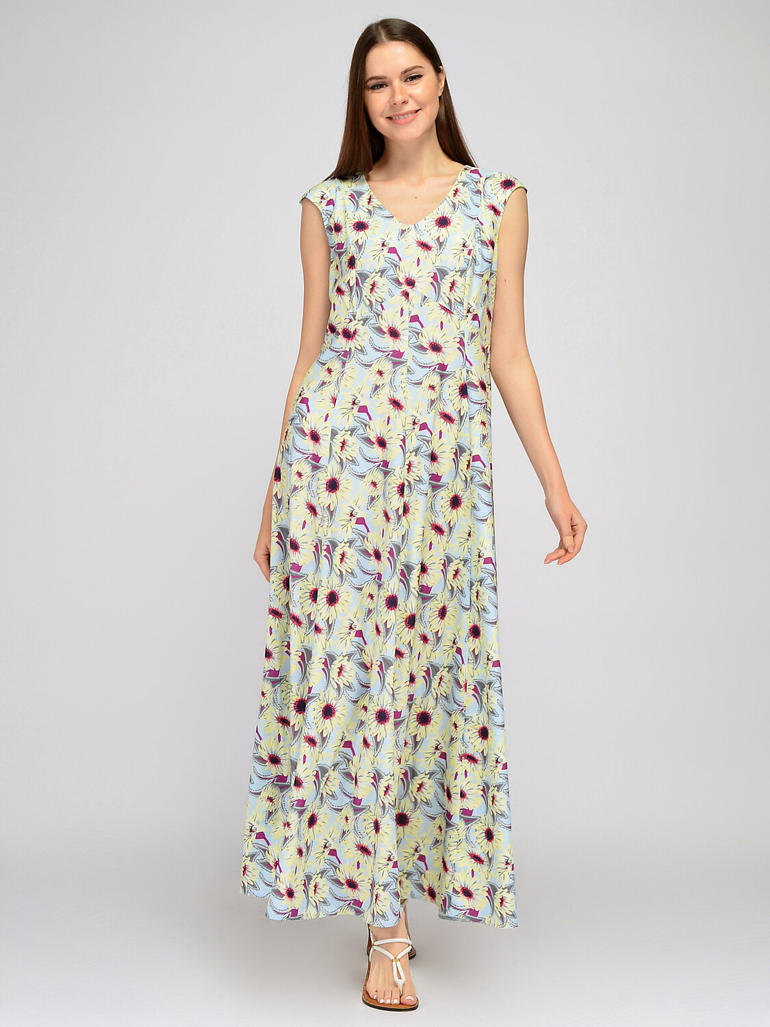 Приталенное платье макси без застёжки подарит ощущение лёгкости и комфорта в жаркий сезон. Лаконичный фасон выполнен в ярких цветочных расцветках, которые идеально подойдут для летнего гардероба. Платье макси без рукавов с широкой юбкой позволит Вам чувствовать себя свободно на прогулке и на отдыхе.