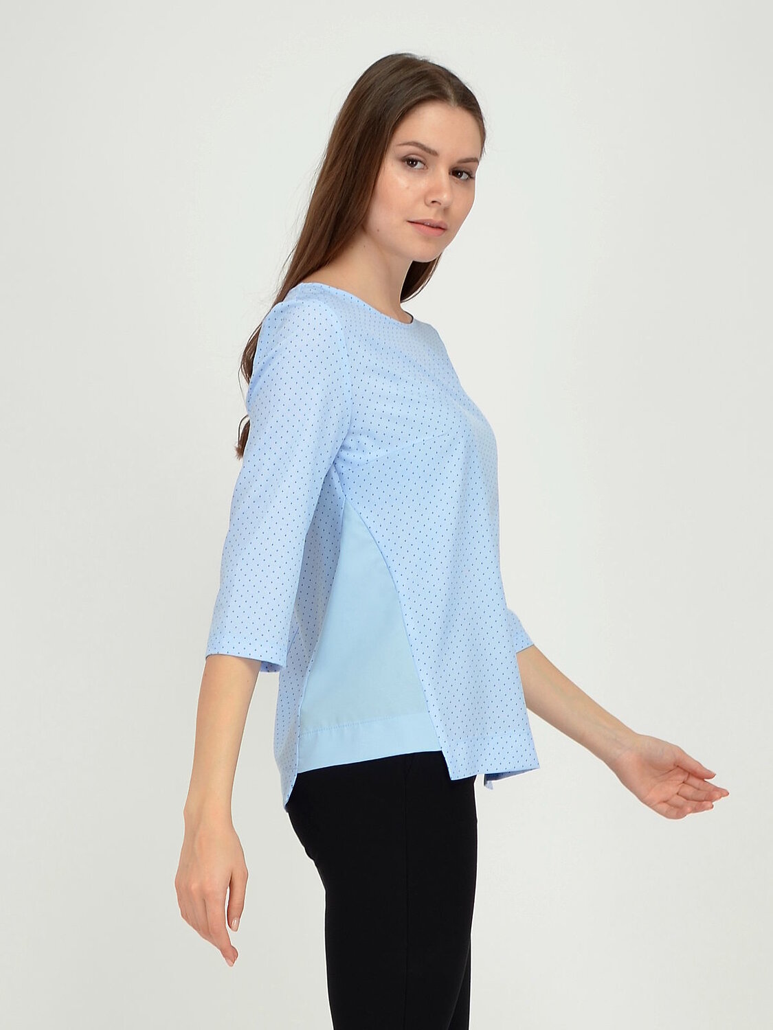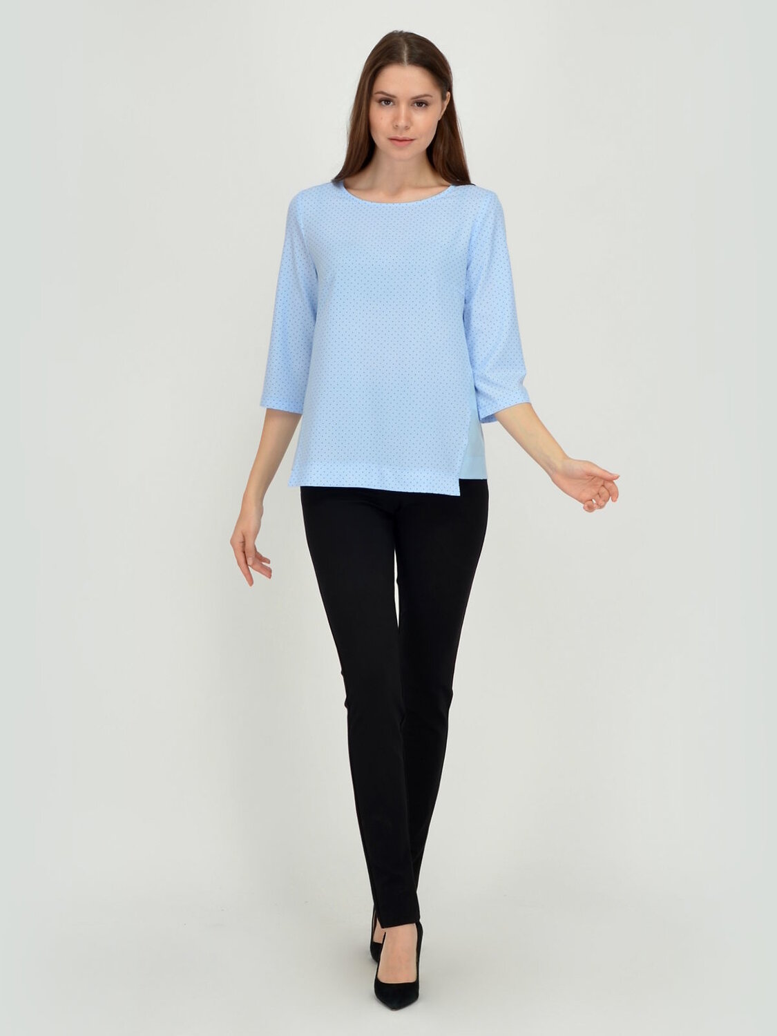 Блузка женская прямого силуэта с рукавом 3/4.По бокам декоративные вставки. Низ изделия фигурный.