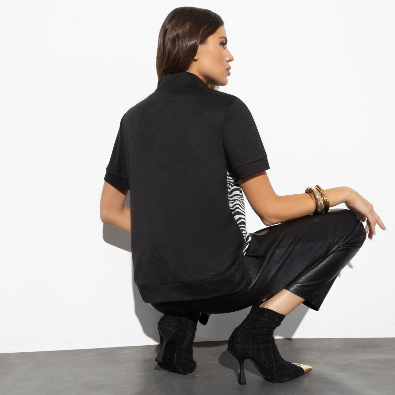 Эта водолазка не для тех, кто скрывается в тени. Она создана для тех, кто готов заявить о себе миру. Сочетание трикотажа «милано» и «набивного» трикотажа обеспечивает комфорт и стиль, а вставки из экокожи добавляют смелости и оригинальности вашему образу. Выразите свою смелость и уверенность в этой водолазке, которая подойдет для любых ситуаций, от повседневных встреч до важных переговоров.