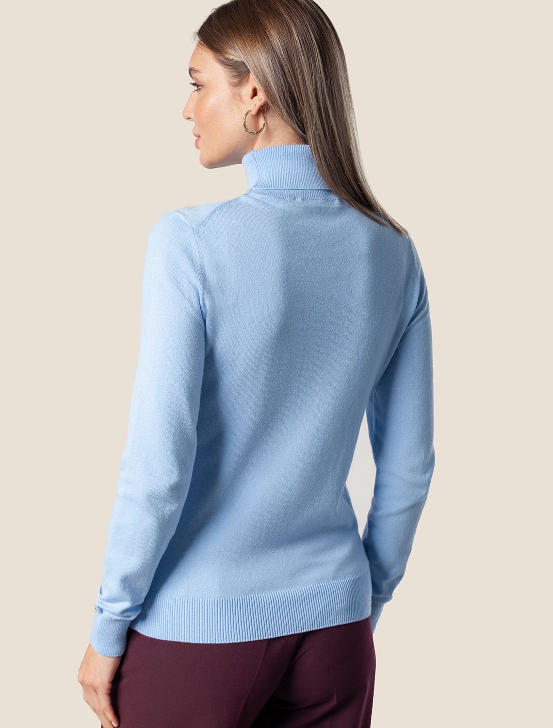 Водолазка тонкой вязки выполнена из мягкой хлопковой пряжи с нейлоном. Настоящий must have в любом гардеробе, изделие служит отличной базой в многослойных образах, сочетается с любым низом. Выгодная инвестиция в базовый демисезонный гардероб. Лаконичная модель дополнена металлическим логотип бренда. светло-голубой меланж