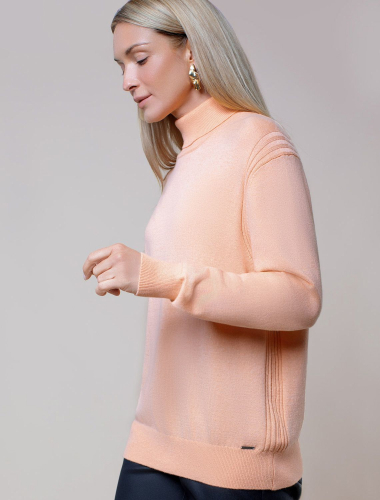 Водолазка тонкой вязки выполнена из хлопка. Лаконичная модель дополнена манжетами с золотистыми пуговицами. Изделие не сковывает движений и подходит для любой фигуры. Мягкая пряжа очень приятная к телу не колется и сохраняет тепло при этом не перегревая.