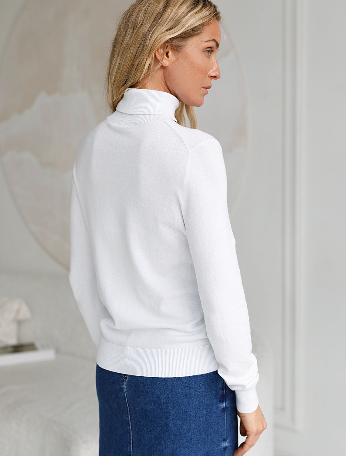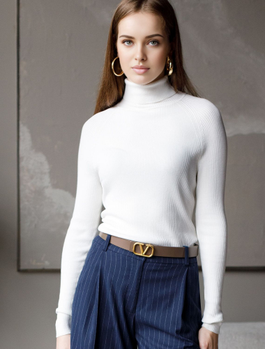 Водолазка тонкой вязки из хлопка с нейлоном D34.122 белый
