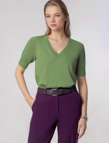 Водолазка тонкой вязки в рубчик выполнена из хлопка. Лаконичная модель с коротким рукавом дополнена металлическим логотипом бренда. Изделие идеально сидит по фигуре и не сковывает движений. Мягкая пряжа очень приятная к телу не колется и сохраняет тепло при этом не перегревая.