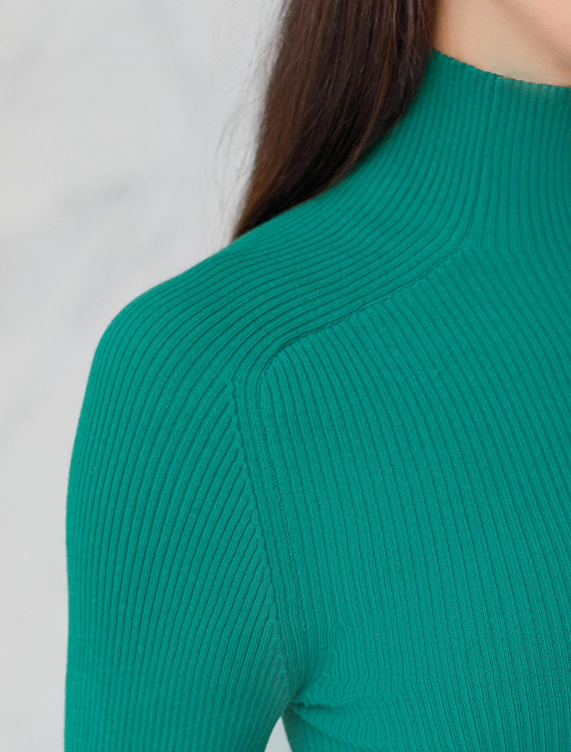 Водолазка тонкой вязки в рубчик выполнена из хлопка. Лаконичная модель с коротким рукавом дополнена металлическим логотипом бренда. Изделие идеально сидит по фигуре и не сковывает движений. Мягкая пряжа очень приятная к телу не колется и сохраняет тепло при этом не перегревая. зеленый