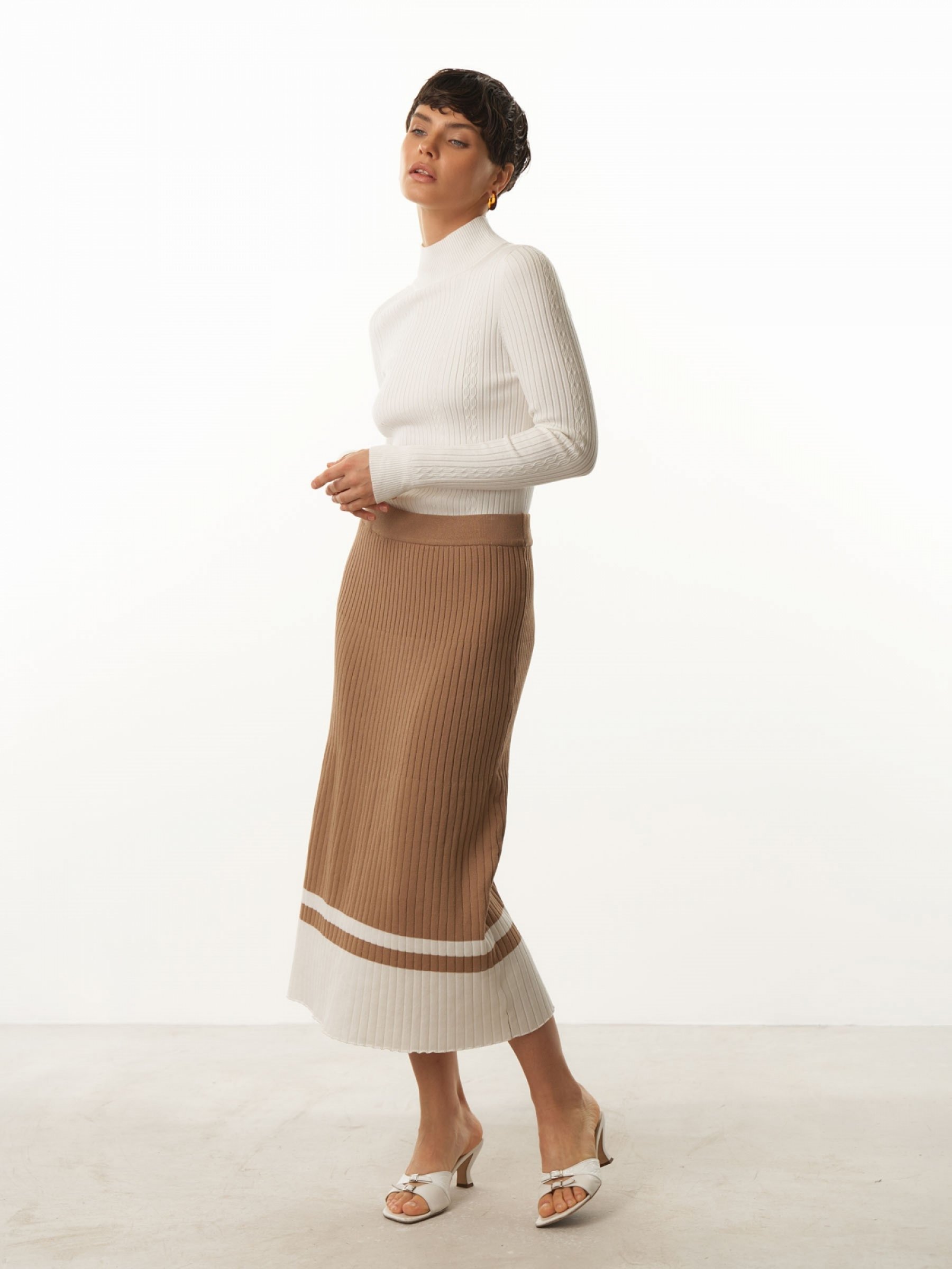 Водолазка классической длины. Прилегающий силуэт и рукава подчеркивают фигуру. Вязка вертикальной резинкой, зрительно вытягивает силуэт, а изящные витые симметричные косы, по бокам изделия,служат украшением и придают ему элегантную воздушность. Горловина и манжеты оформлены широкой фактурной резинкой. Модель изготовлена из мягкого трикотажа на основе вискозы с добавлением нейлона. Широкая цветовая гамма и лаконичный дизайн сделают водолазку базовым элементом вашего гардероба.