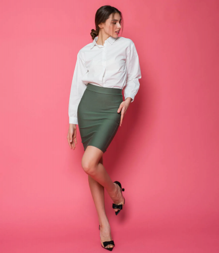 Юбка-карандаш относится к базовому гардеробу для создания делового или повседневного образа. Ее сочетают с водолазкой, свитером, рубашкой, топом, кардиганом и другим верхом. Высокая юбка дополнена небольшим вырезом сзади. Изделие изготовлено из высококачественного материала с добавлением эластана, благодаря чему оно немного тянется и дарит комфорт. Особый крой подчеркивает красоту женской фигуры и позволяет создать одновременно сдержанный и чувственный образ. В ассортименте представлено несколько модных расцветок в светлых и темных тонах. В нашем интернет-магазине вы можете недорого купить юбку-карандаш с доставкой по всем регионам России. Мы занимаемся розничными и оптовыми продажами. Рост 164 см, 83-61-88. Хлопок, Эластан