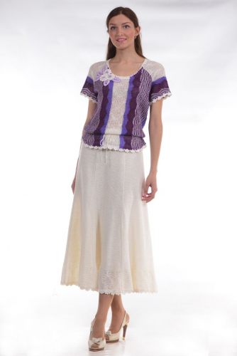 Описание: Юбка 4 клина, пояс на резинке, трикотаж с декоративными дырами, полосы