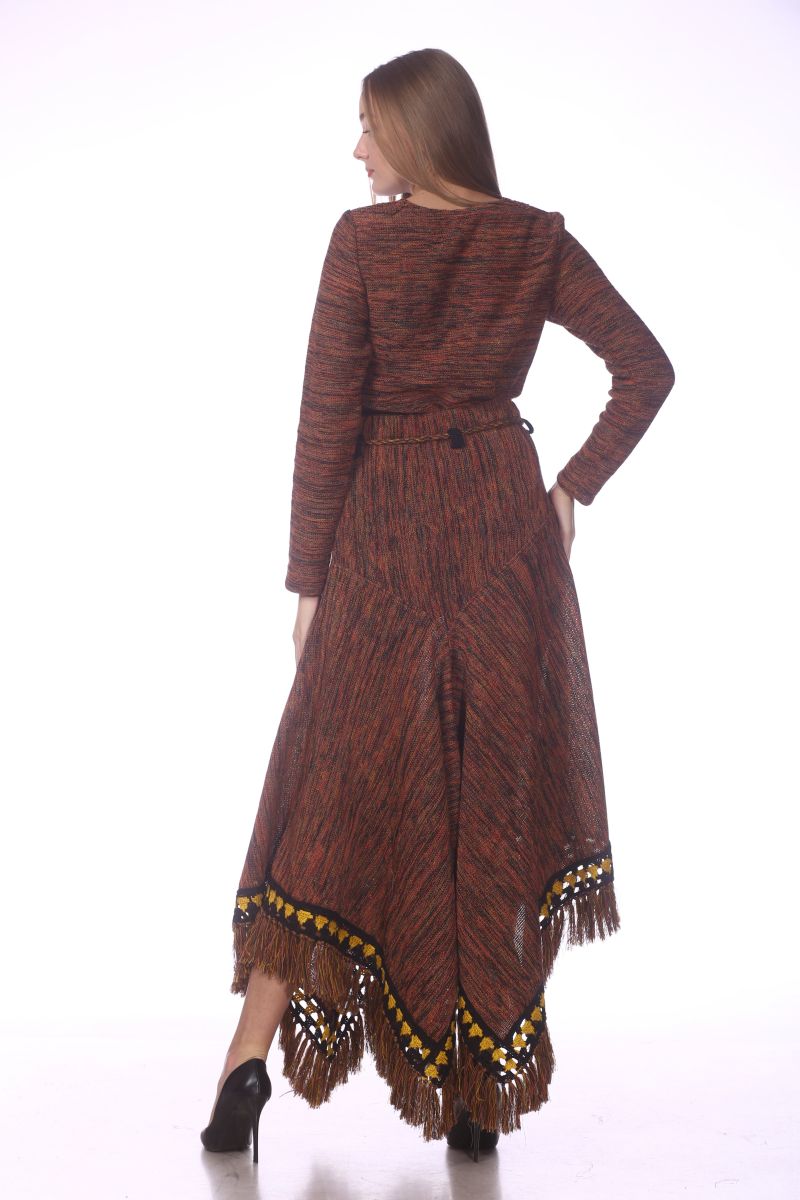 Описание: Юбка, пояс на резинке, отделка крючок, кисти, трикотаж меланж