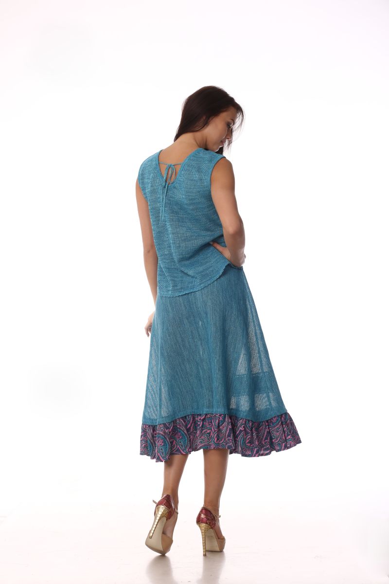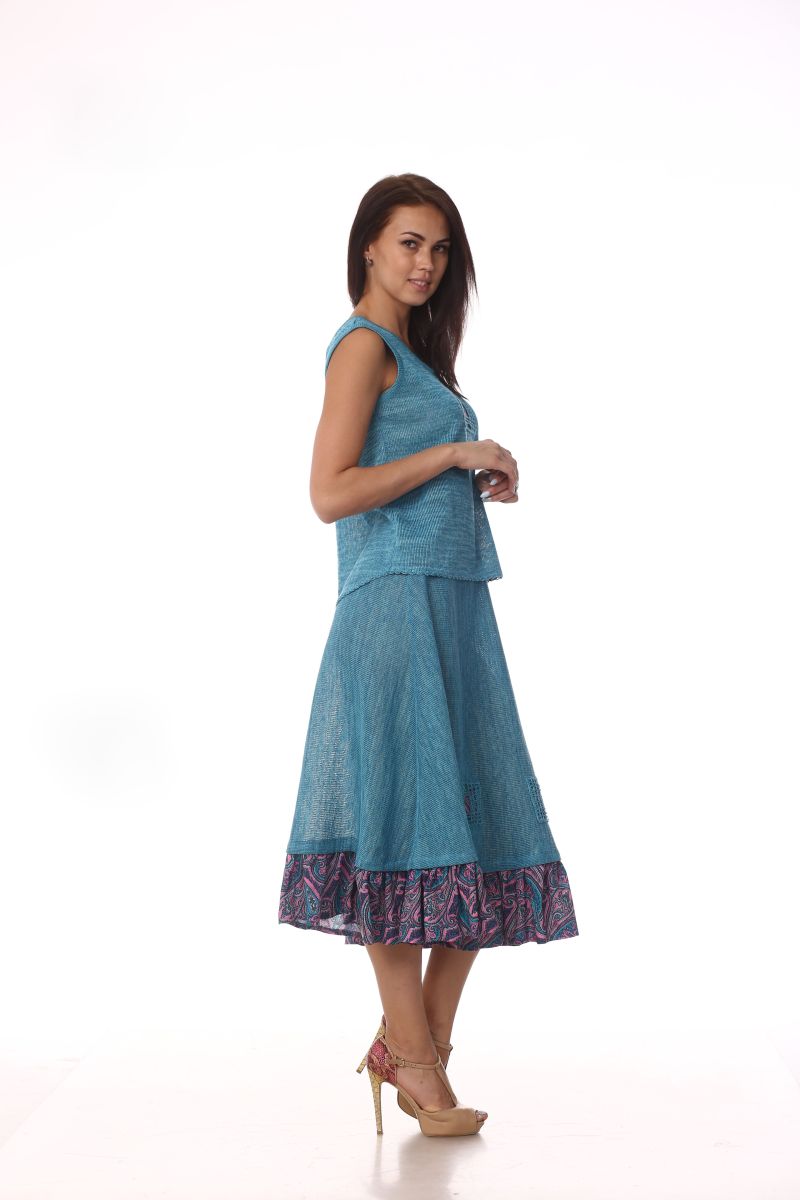 Описание: Юбка с оборкой из штапеля, пояс на резинке, отделка, трикотаж