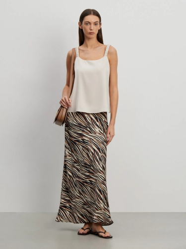 Эффектная юбка А-силуэта с абстрактным принтом в трендовых цветах сезона станет ярким акцентом вашего гардероба. Модель с высокой посадкой и актуальной длиной миди прекрасно подчеркивает талию. В сочетании с топом или однотонной рубашкой создаст стильный и запоминающийся образ. Выполненная из легкой вискозы, юбка обеспечивает комфорт и свободу движений, не требуя подкладки