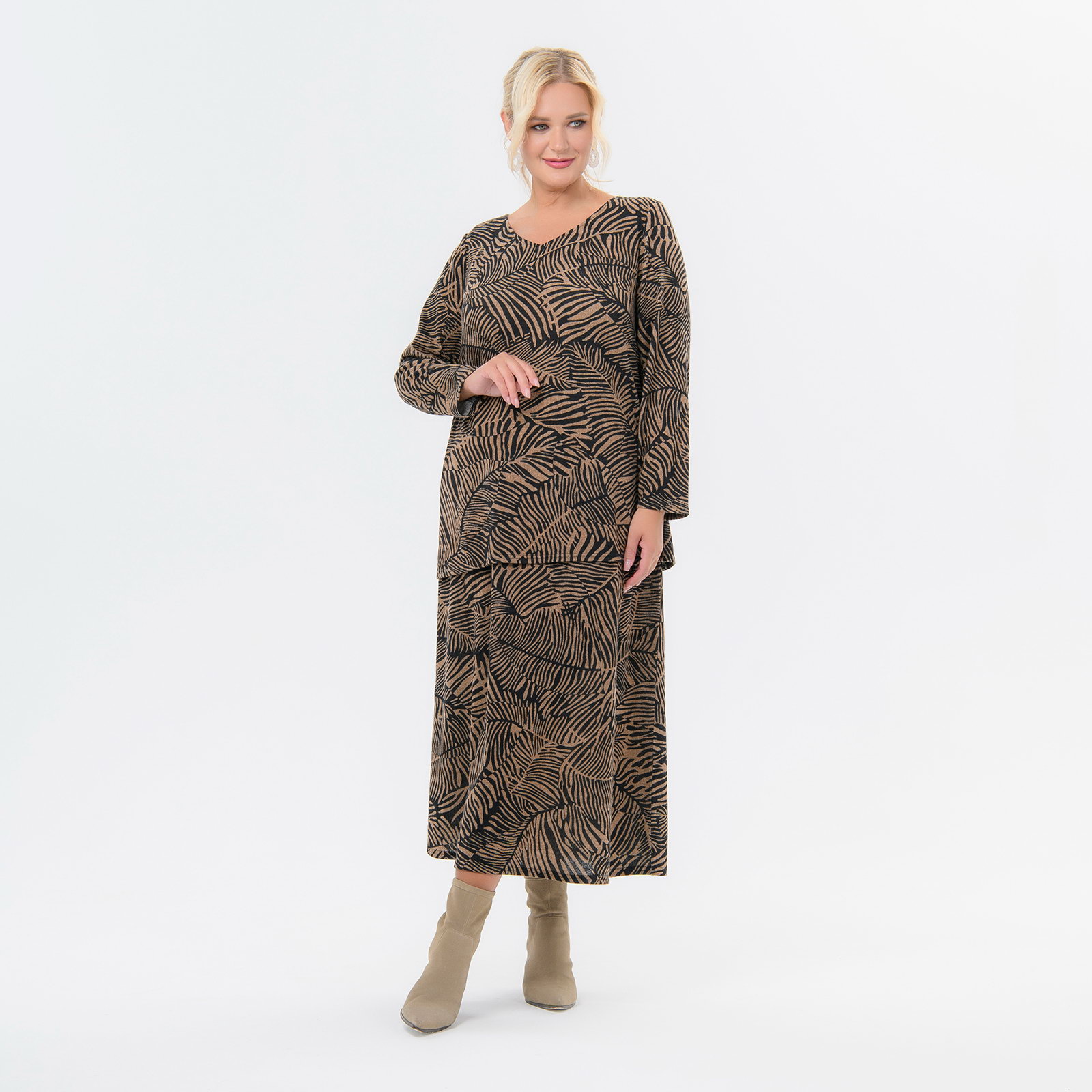 Юбка А - силуэта, джерси-ангора, принт каштаново-черный