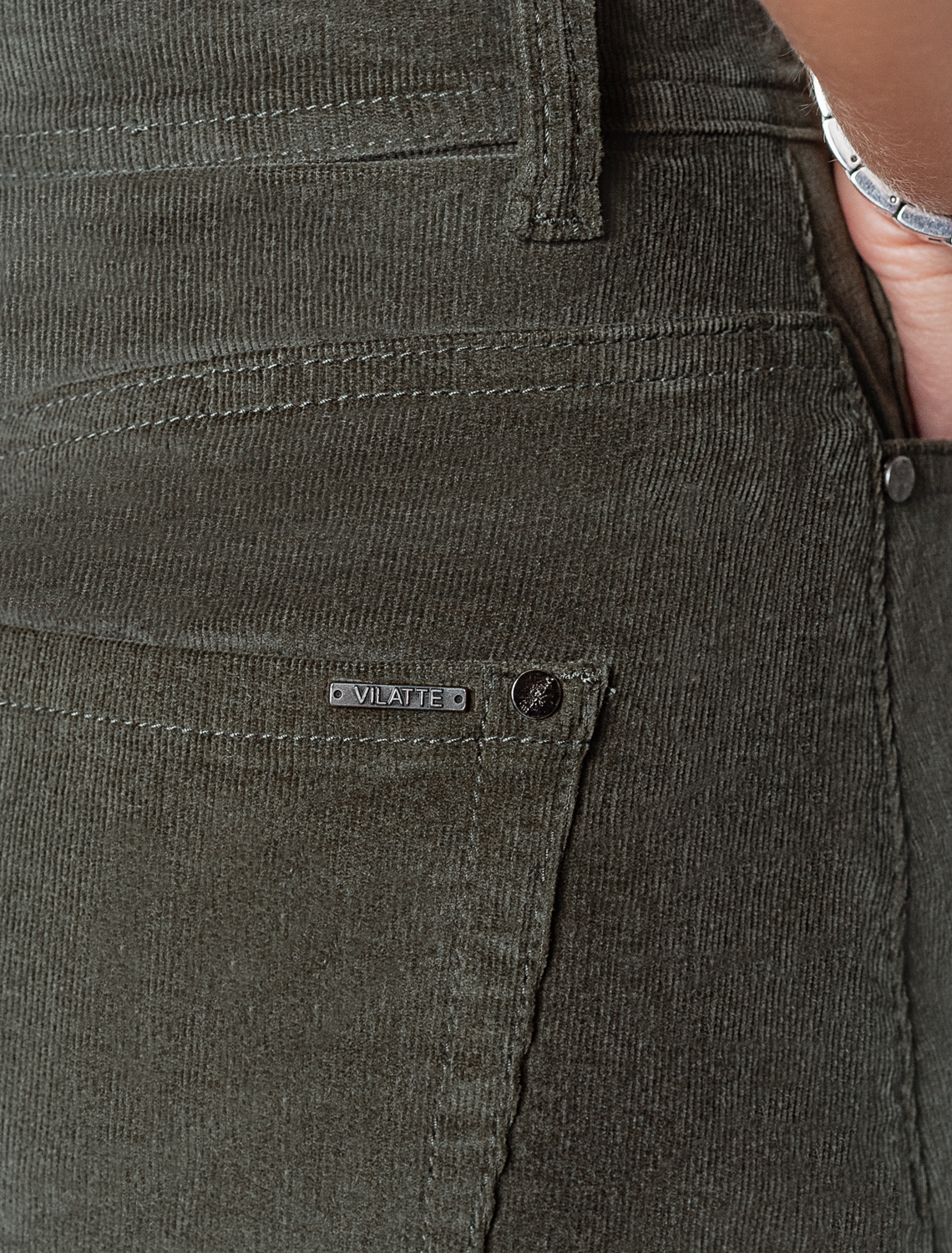Юбка А-силуэта выполнена из эластичного хлопкового микро-вельвета. Модель без подкладки дополнена высоким разрезом спереди и пятью карманами как у джинсов с высококачественной фурнитурой. Отлично впишется в повседневный и офисный аутфит с лоферами, челси и высокими сапогами. Не требует особого ухода, почти не мнется и сохраняет безупречный внешний вид в течении всего дня. темно-зеленый